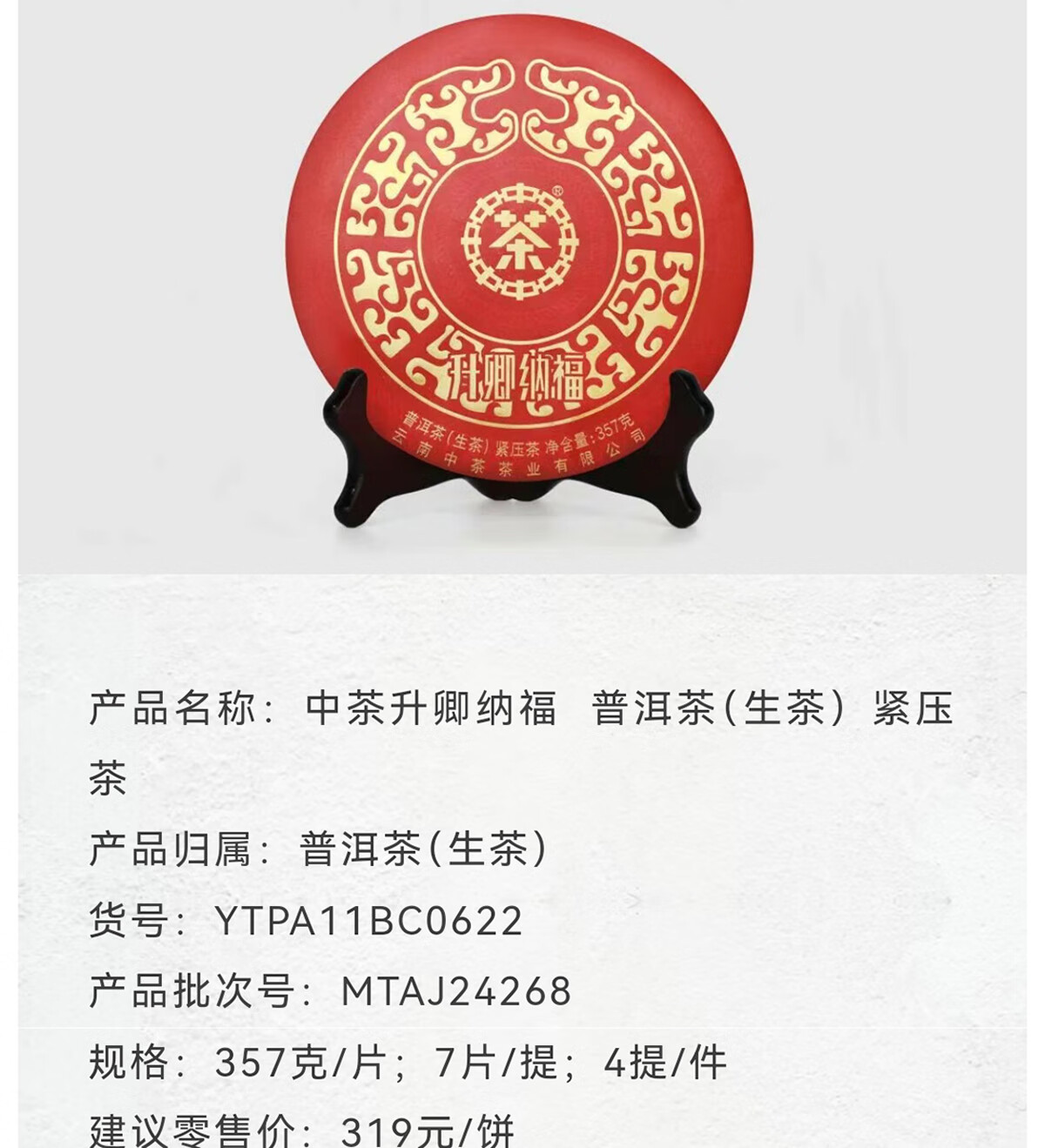 中茶蝴蝶白茶5815升卿纳福礼盒357g