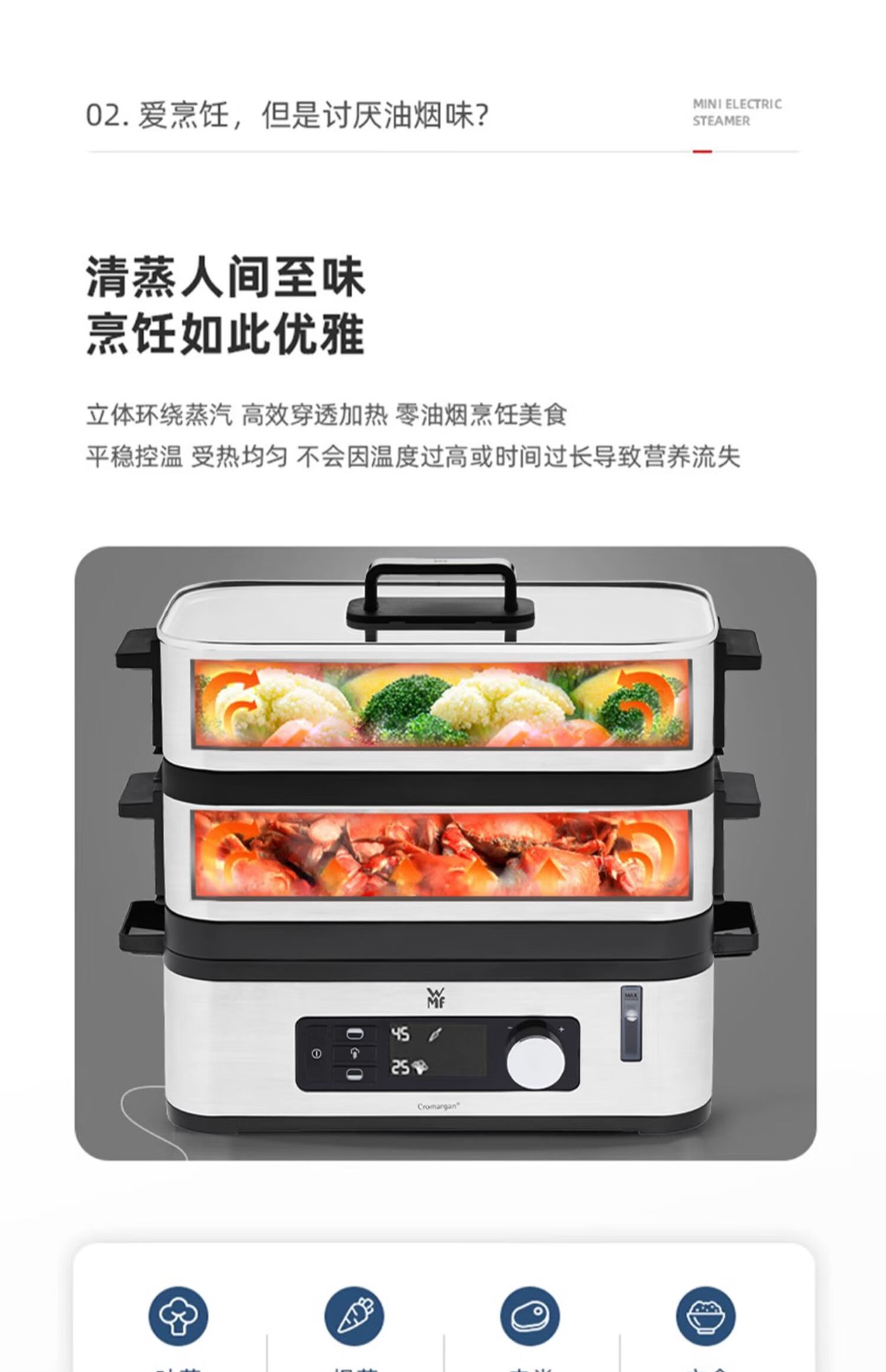 德国WMF福腾宝智巧电蒸炉不锈钢蒸锅 0415099911