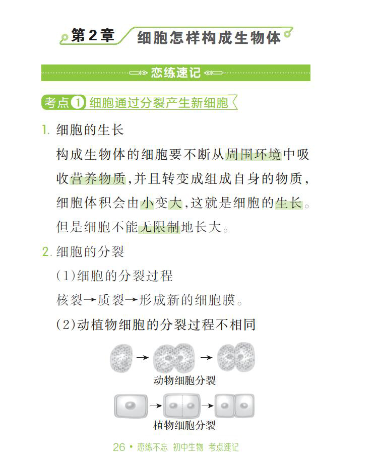 恋练不忘 初中生物 考点速记 中考生物 生物随身记背诵口袋书 中考复习 初一初二初三 背诵技巧记忆法 新东方