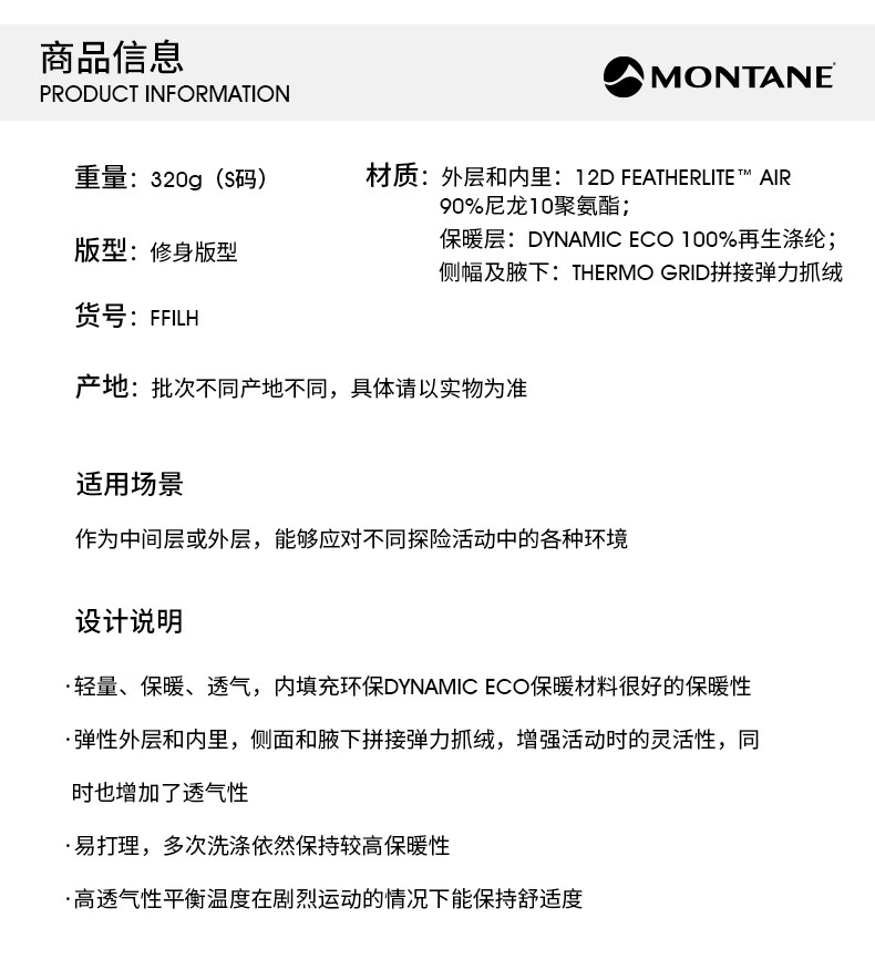 MONTANE 盟泰恩FIREBALL LITE户外棉服 女款轻量化保暖棉衣 运动防寒棉服