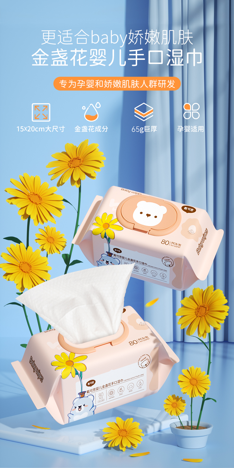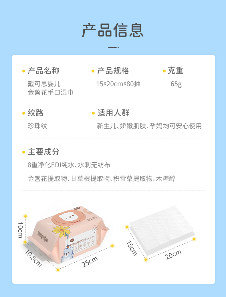 戴可思婴儿手口湿巾金盏花新生儿宝宝专用80抽*6包/80抽*9包家庭实惠装