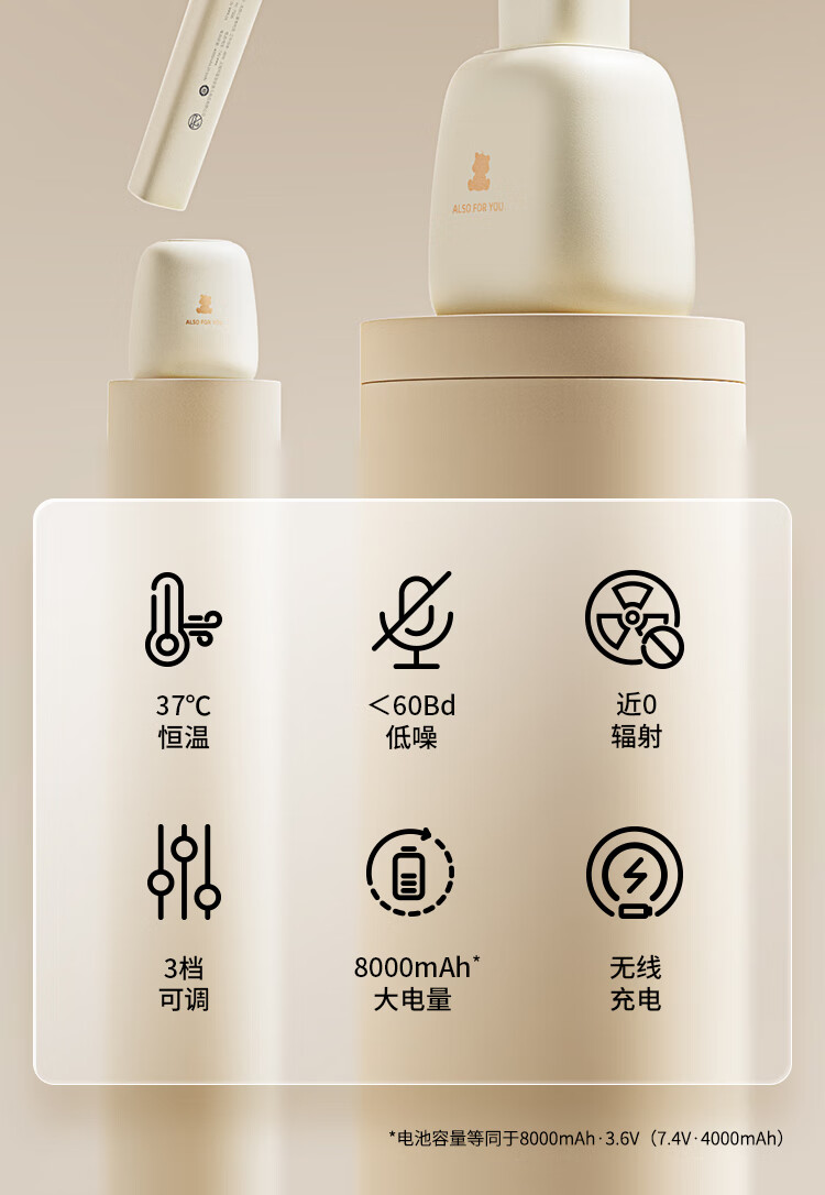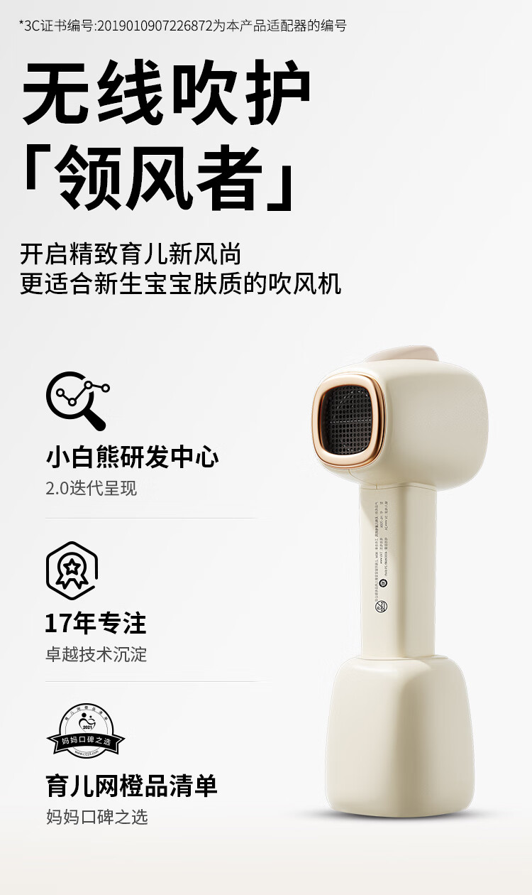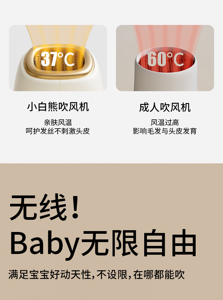 小白熊 儿童锂电池吹风机 无线儿童电吹风HL-7006