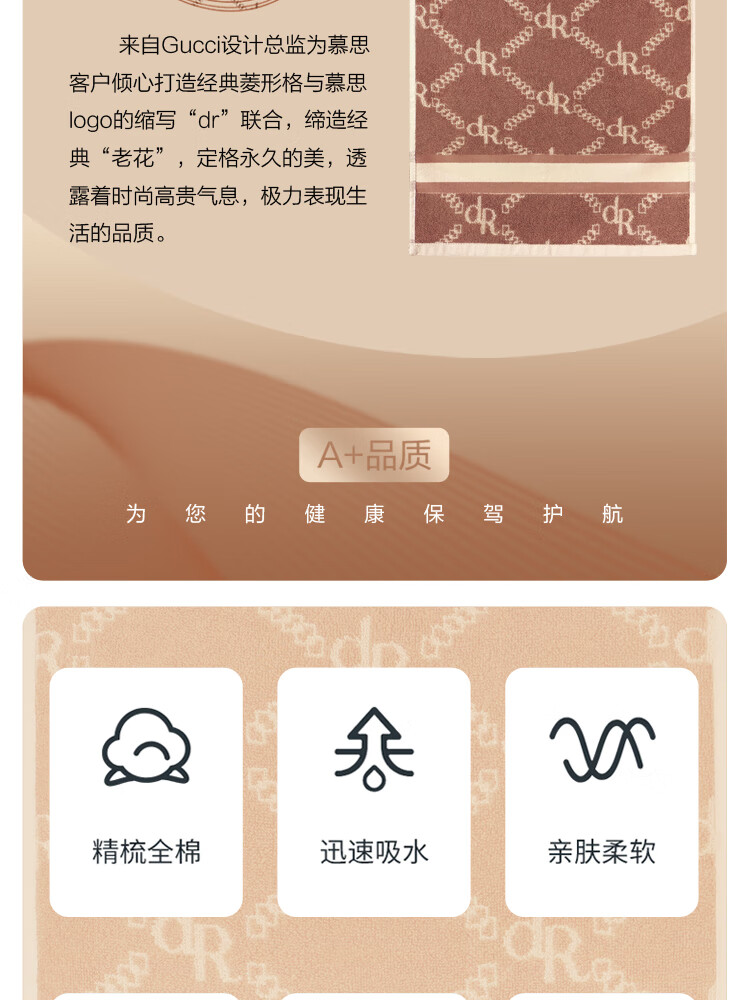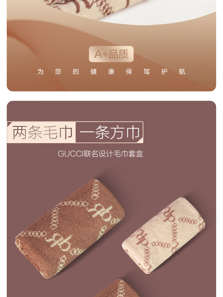 慕思 【GUCCI设计师款】毛巾礼盒两条毛巾+一条婴儿方巾