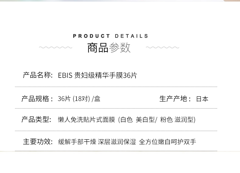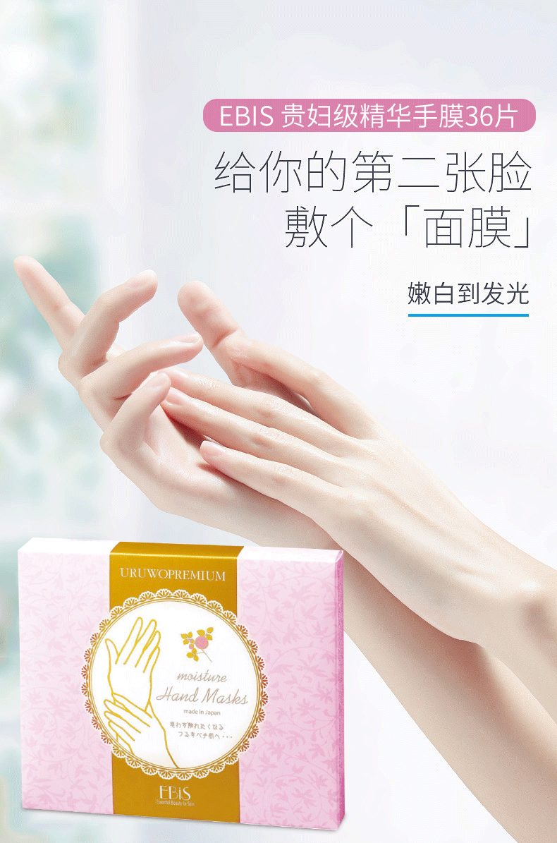 【保税仓】日本ebis贵妇滋润精华手膜细嫩双手细纹36片嫩白补水保湿手部护理