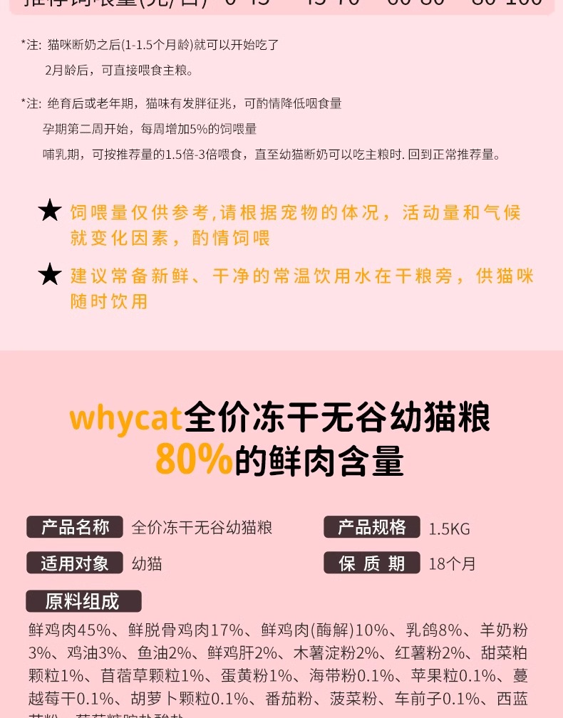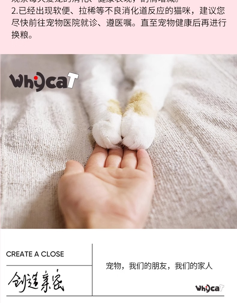 whycat幼猫粮2包试吃每包/50g 为了保证活动公平,每人限参加一次 同个ip/同个地址/相近地址/虚构收货信息/多账号购买等批量异常下单,店铺有权对异常订单不发货且取消活动资格
