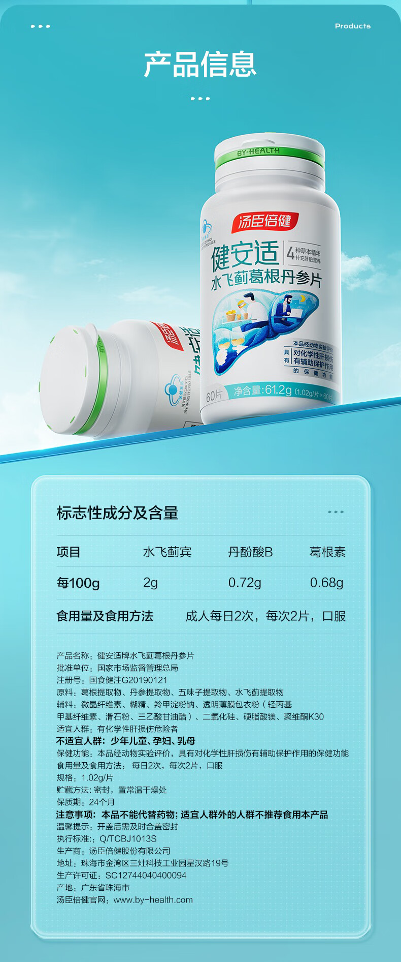 汤臣倍健 健安适水飞蓟葛根丹参片彩盒装(60片)