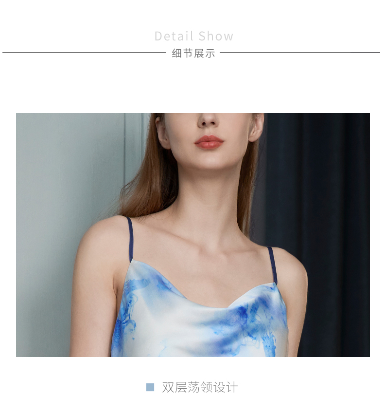 Solo seta真丝睡裙短款女丝绸居家桑蚕丝荡领吊带裙外穿秋冬