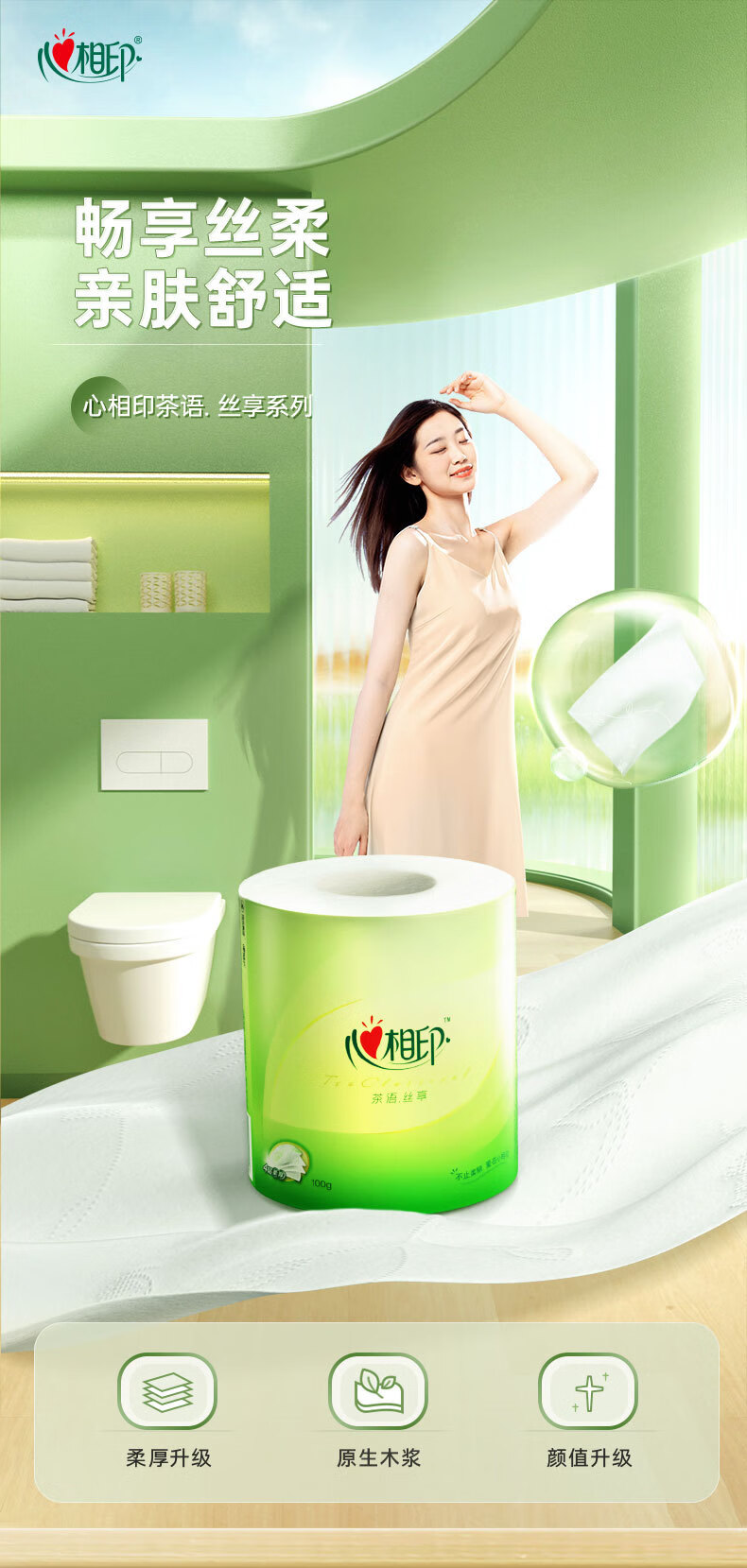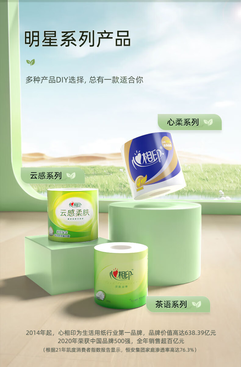 BT3220(箱装)心相印心柔100克20粒装四层卷筒卫生纸