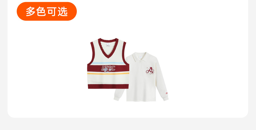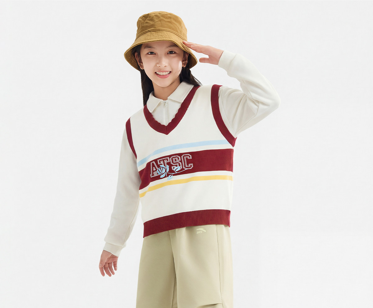 安踏儿童女大童两件套上衣2026年新款女孩篮球针织背心长袖T恤超362621715