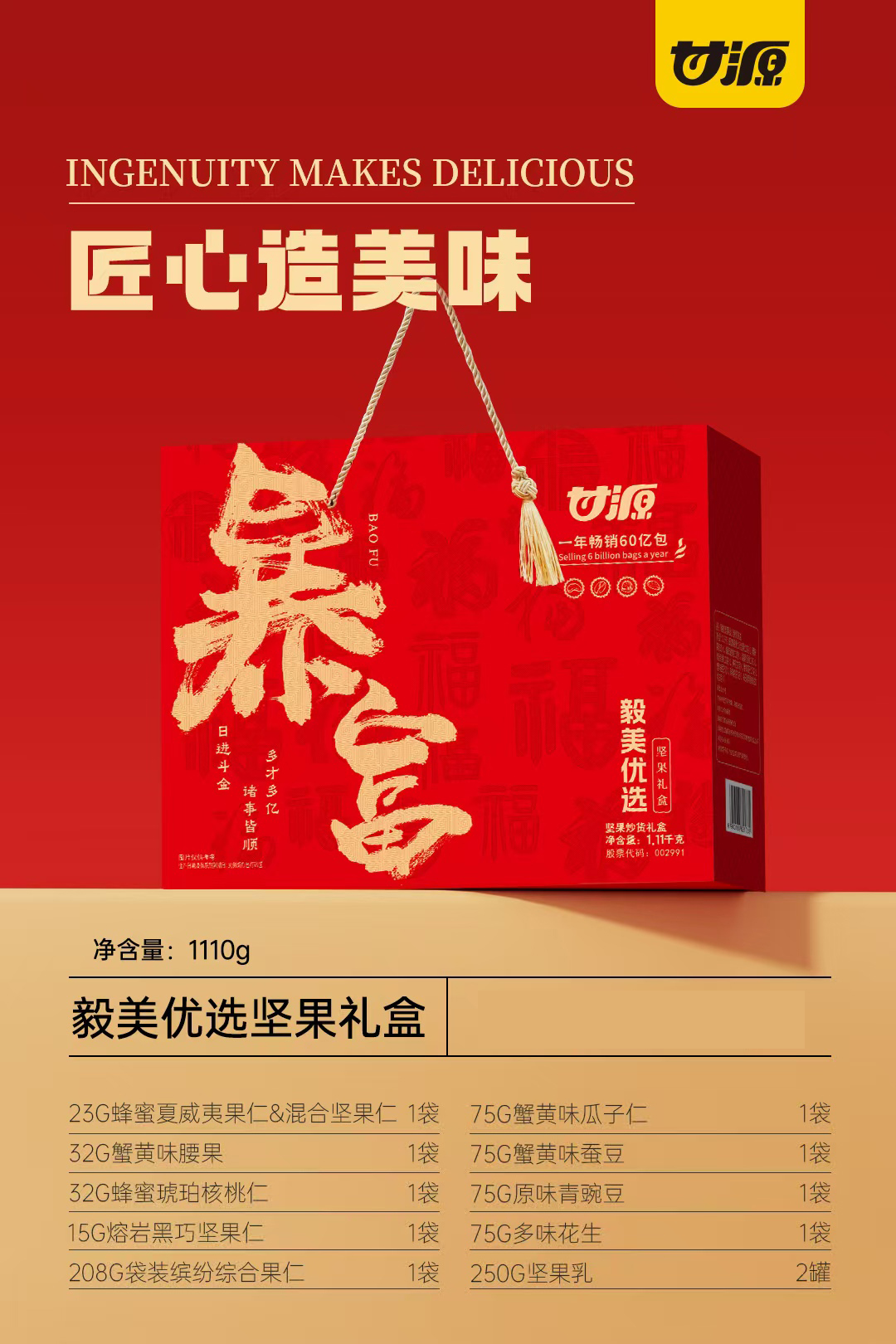 【甘源暴富】甘源暴富坚果零食礼盒1110g!蟹黄味零食组合,香脆美味,寓意暴富,年轻人最爱!