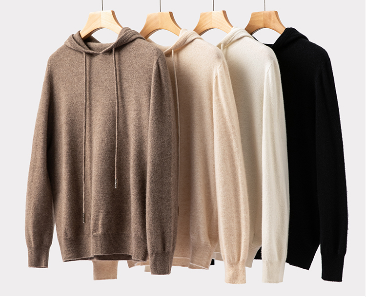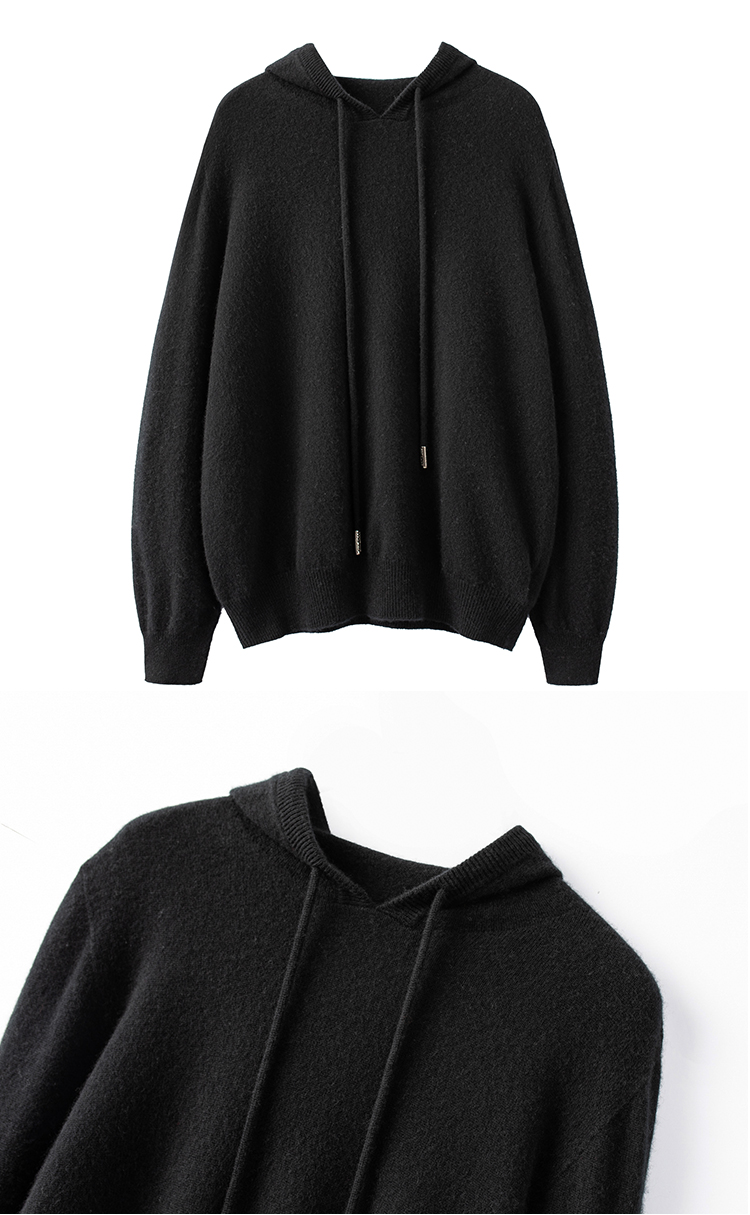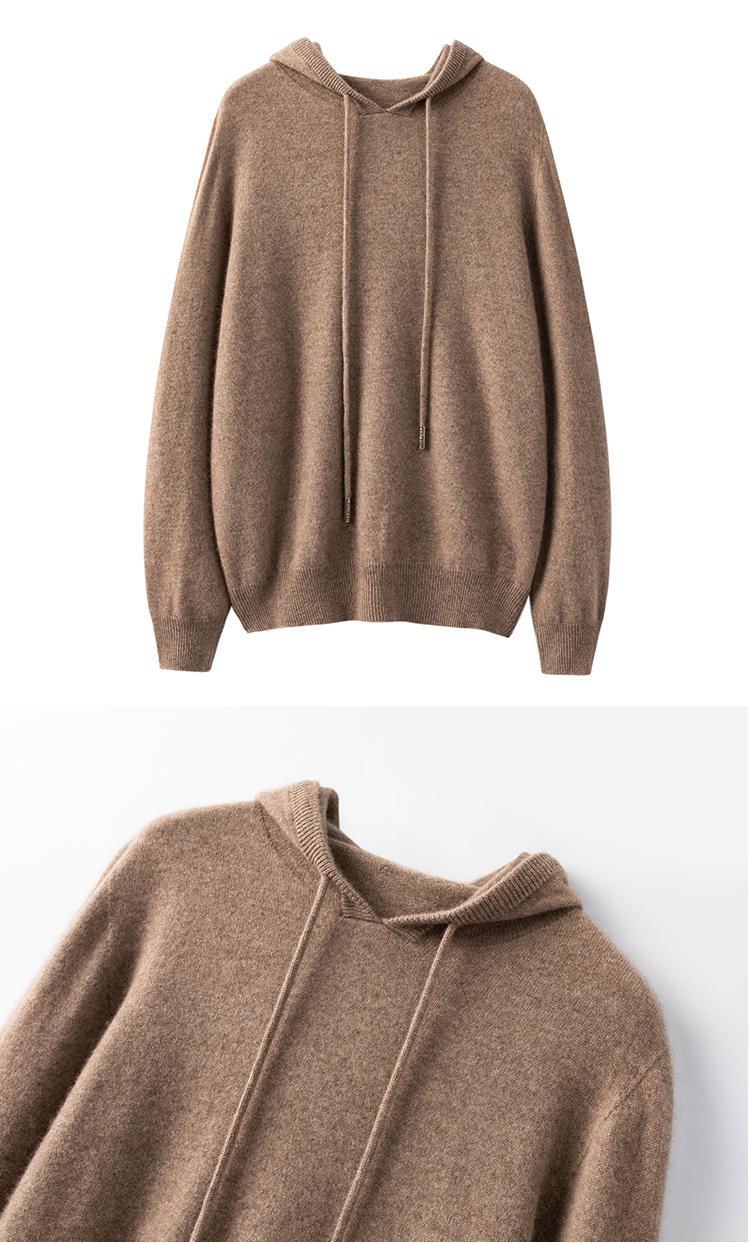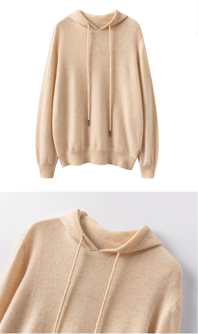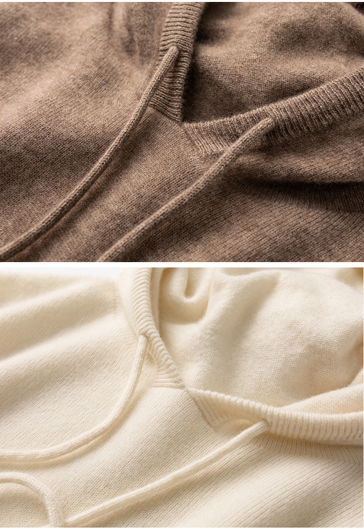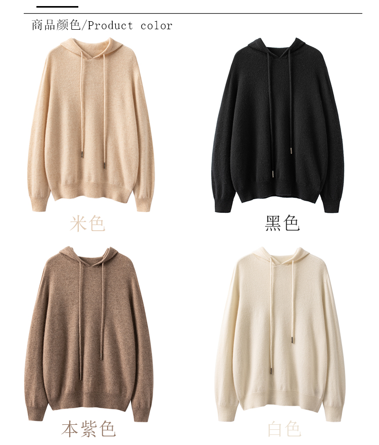 叠穿神器 纯山羊绒无缝连帽衫保暖毛衣女