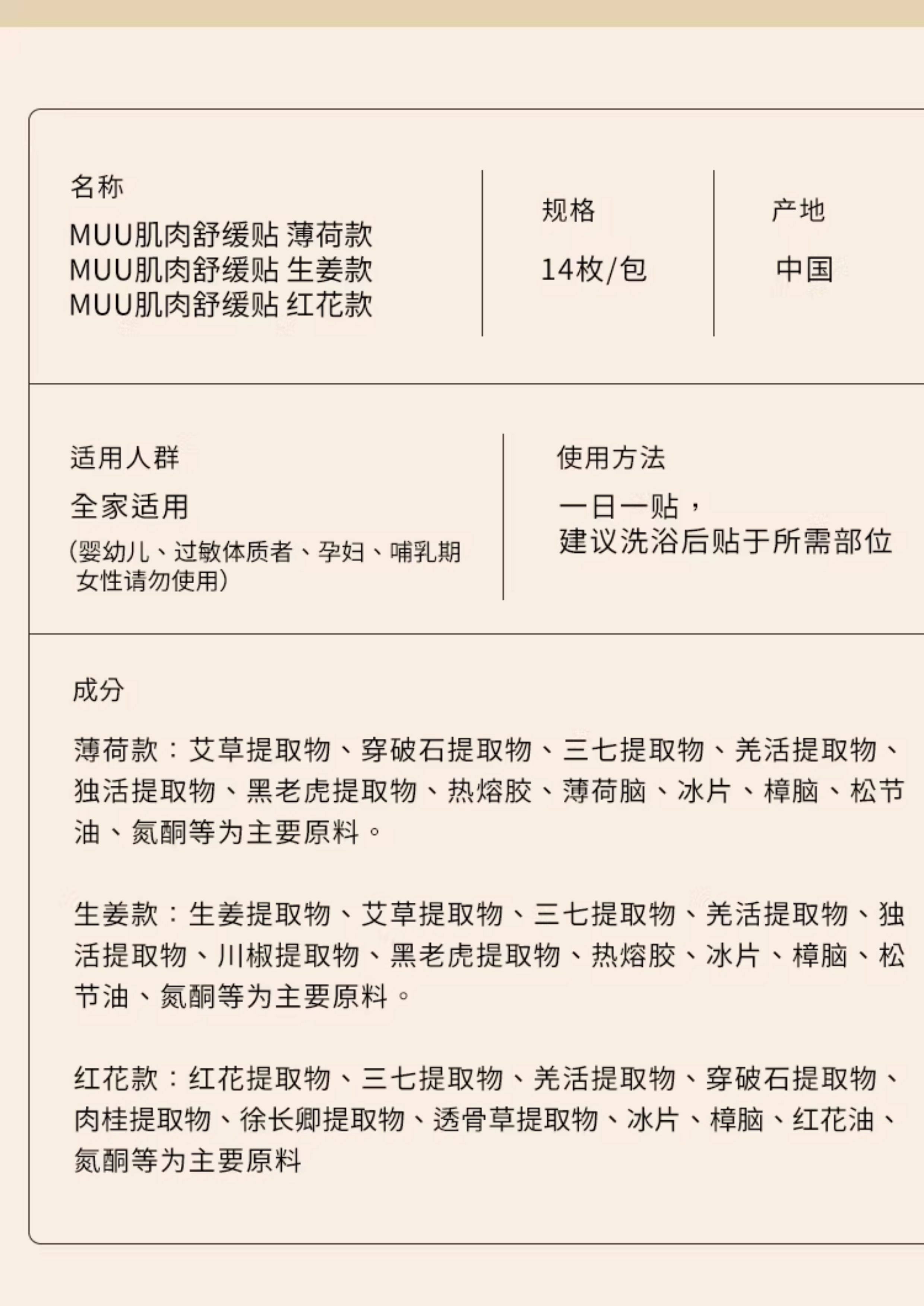 minikuma 生姜型 舒缓贴(14贴入)muu