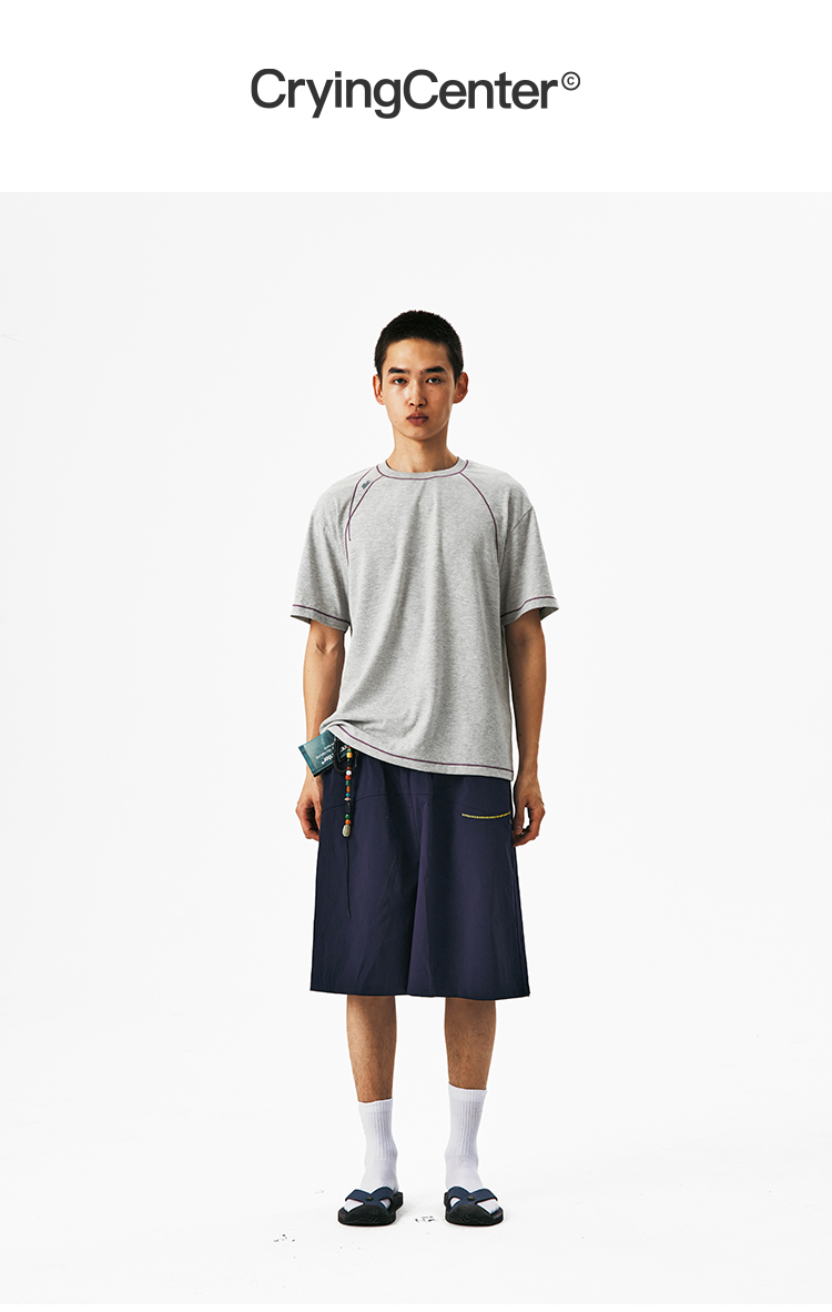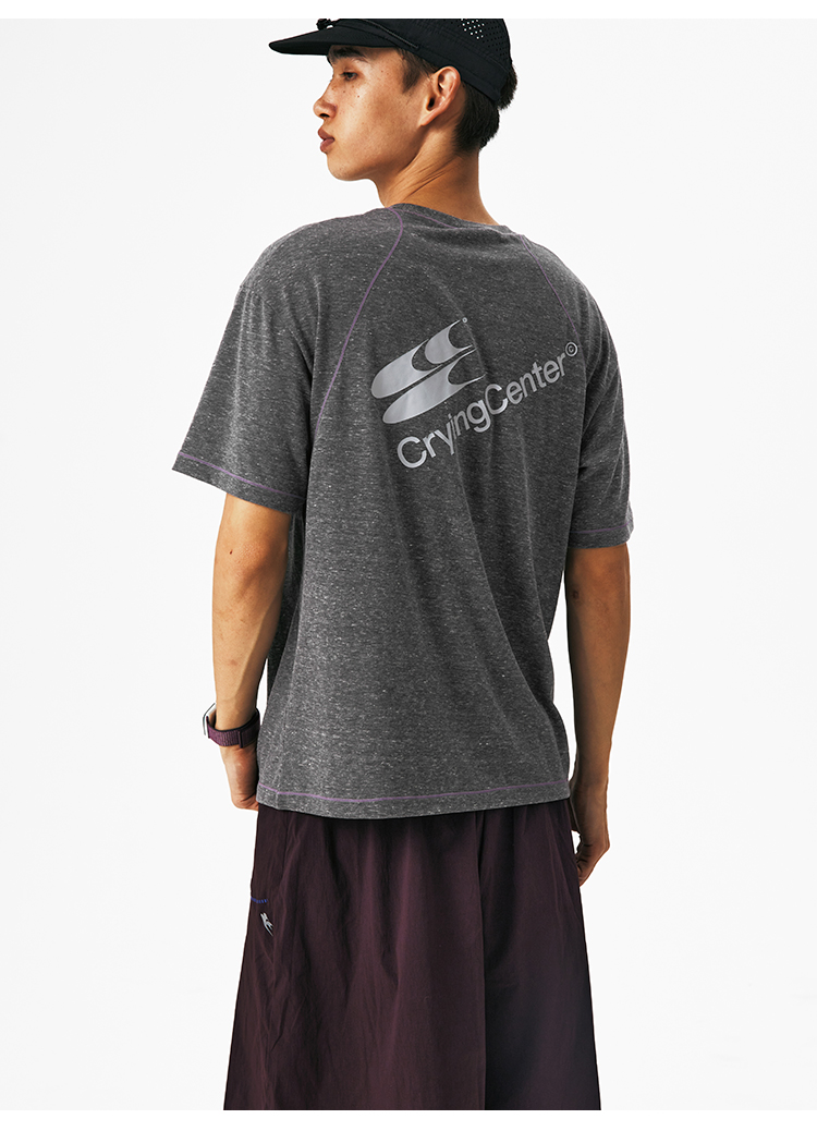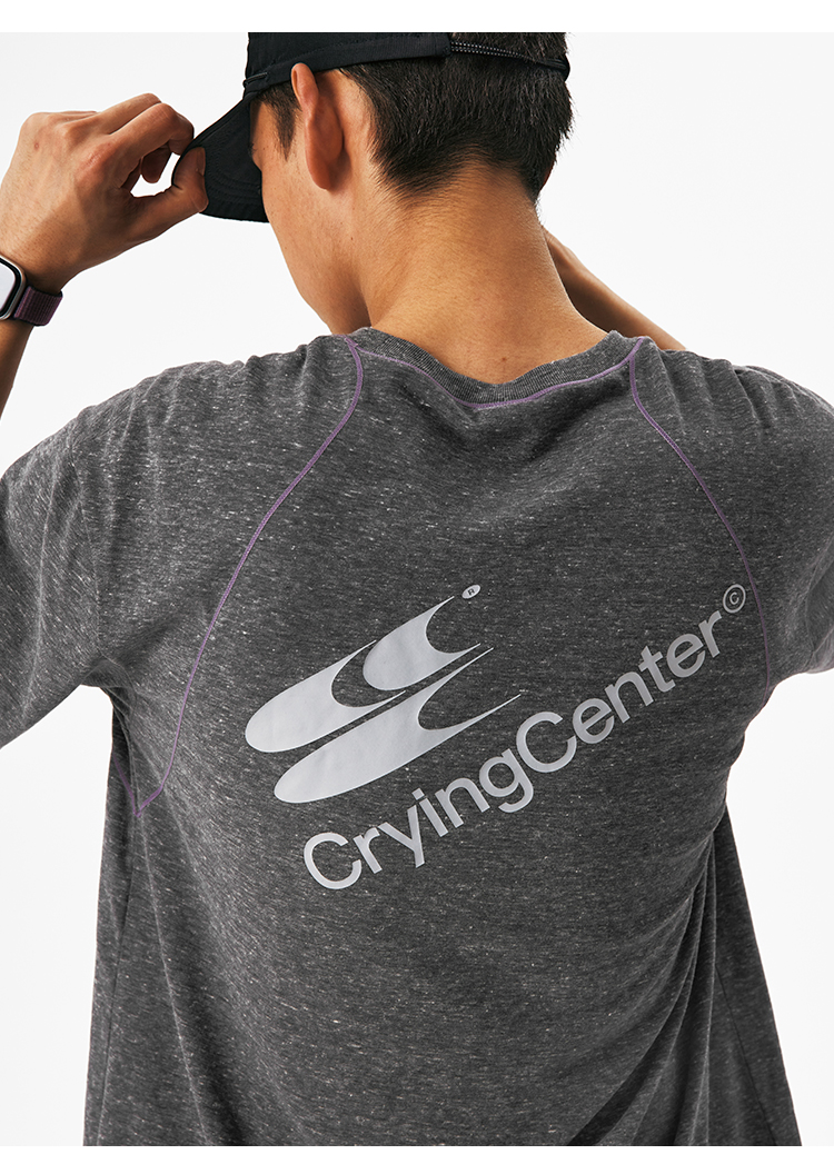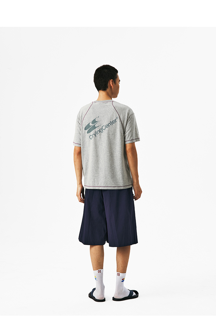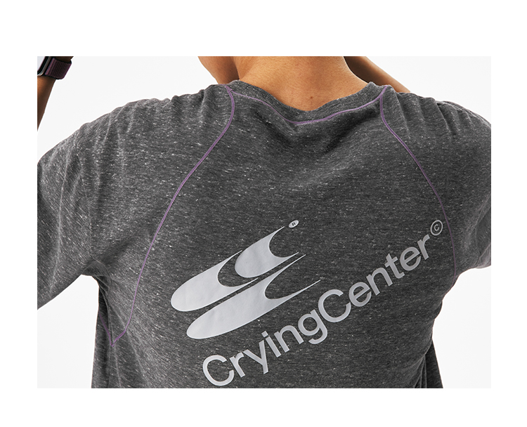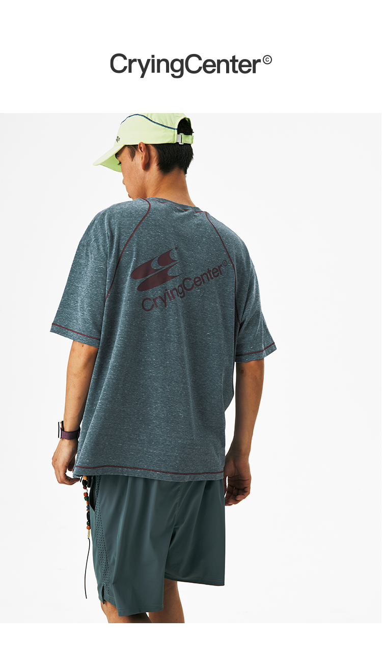 CryingCenter圆领宽松彩纱撞色分割训练运动休闲T恤上衣哭喊中心