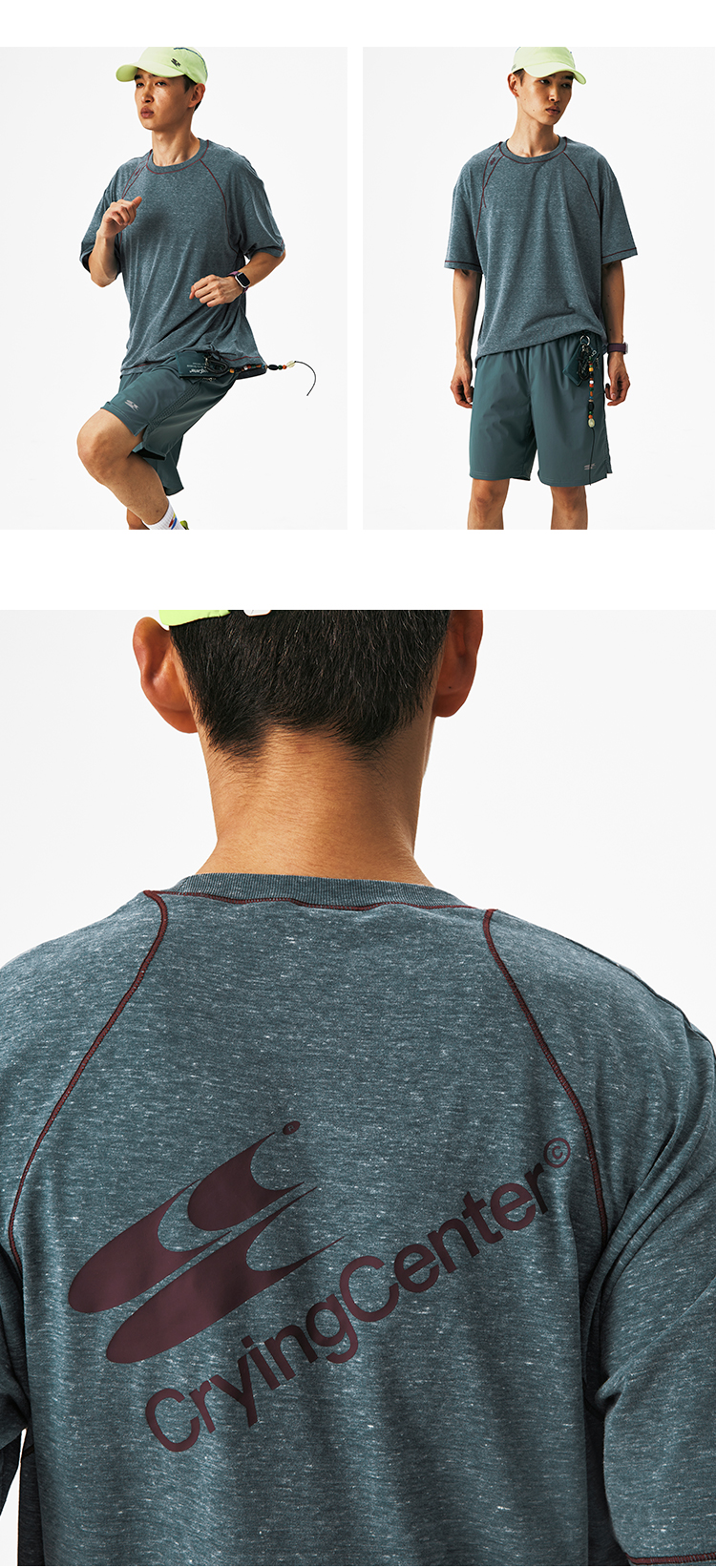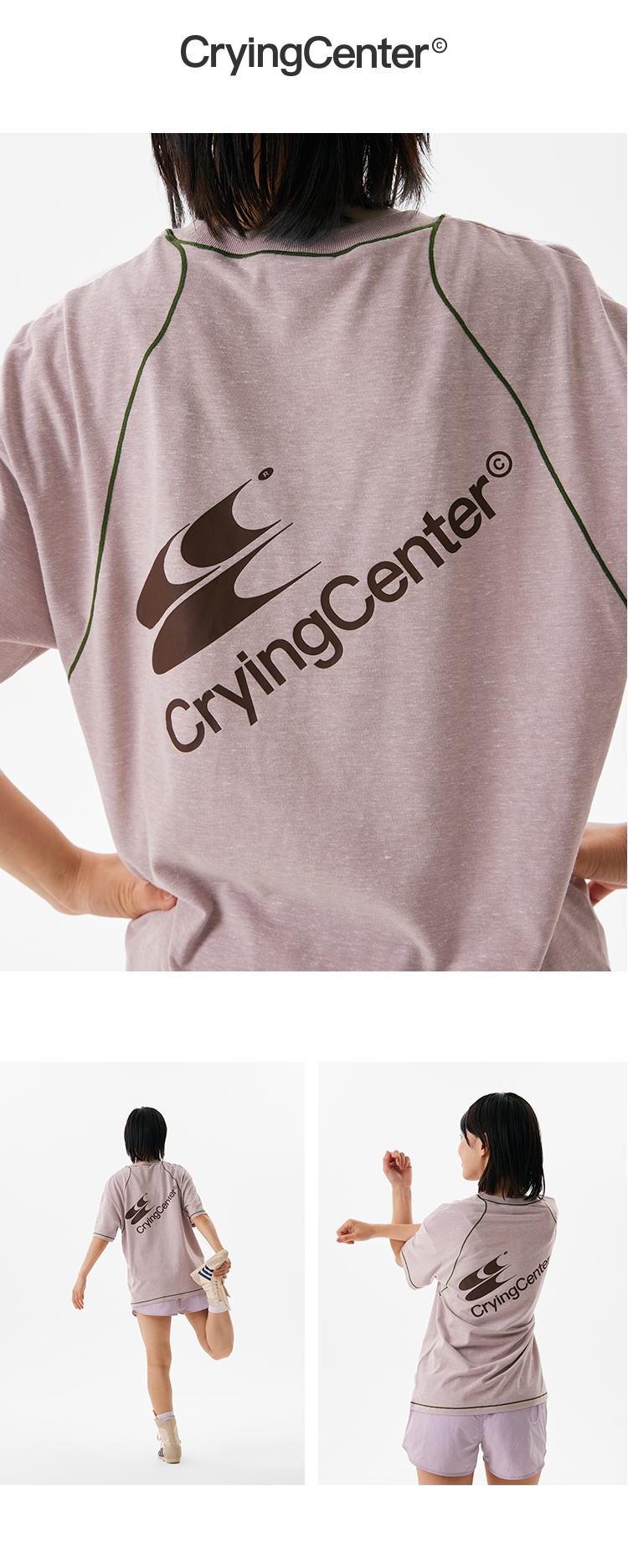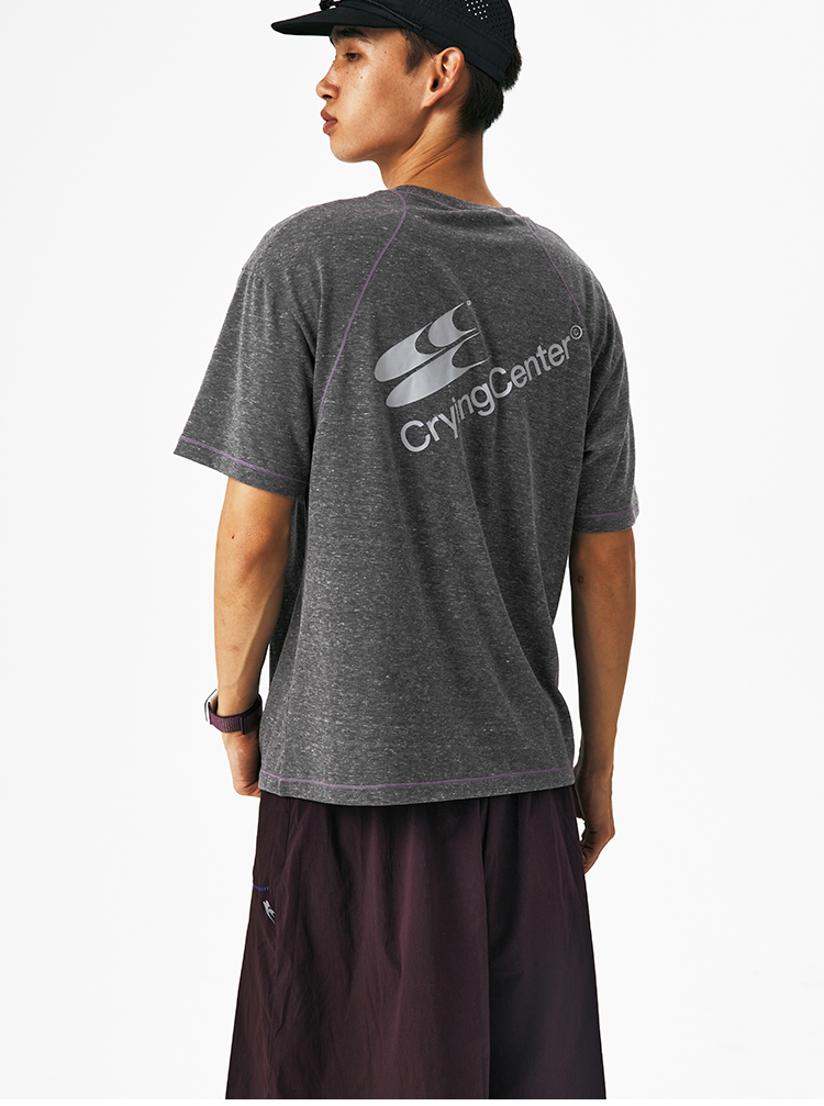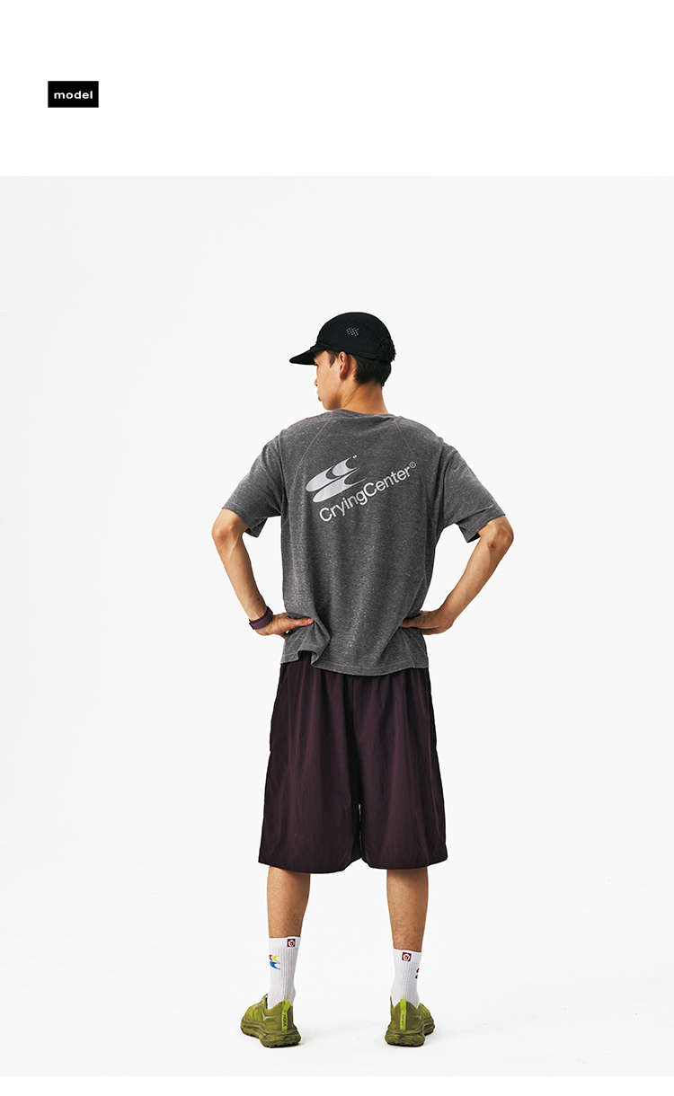 CryingCenter圆领宽松彩纱撞色分割训练运动休闲T恤上衣哭喊中心