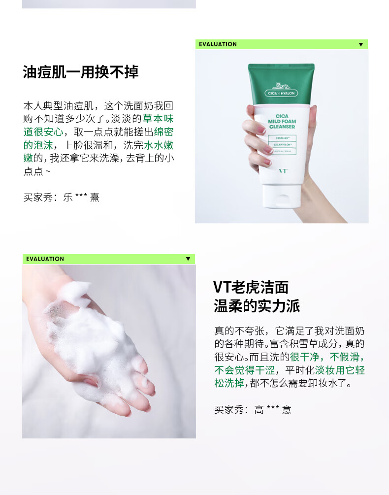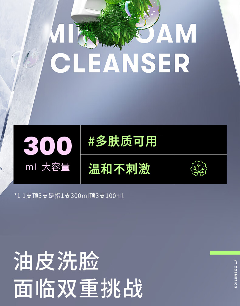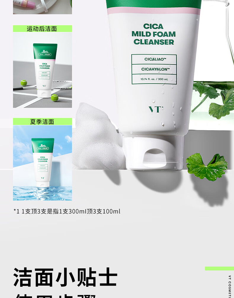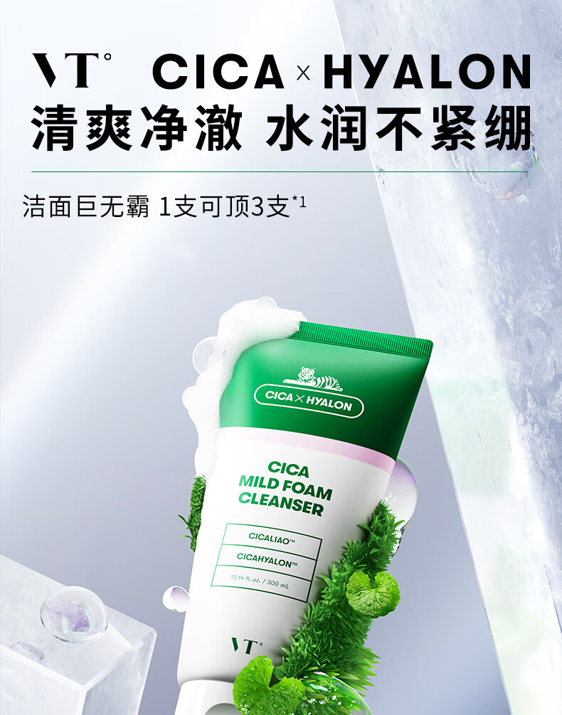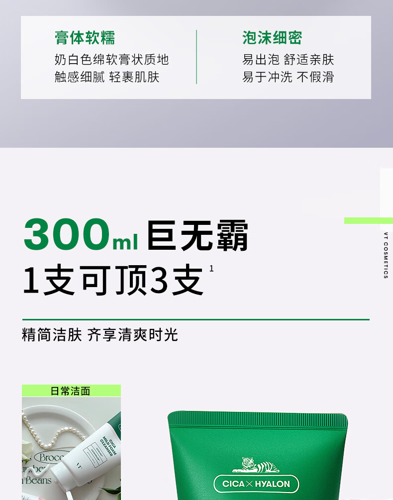 VT薇缔韩国进口老虎积雪草洗面奶深层清洁洁面乳 300ml/支