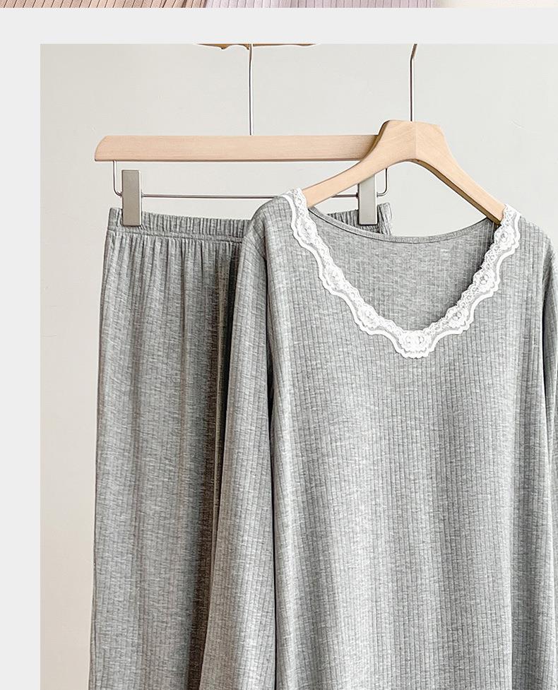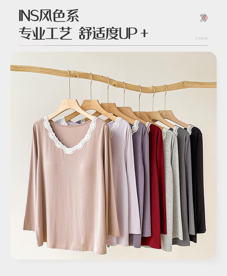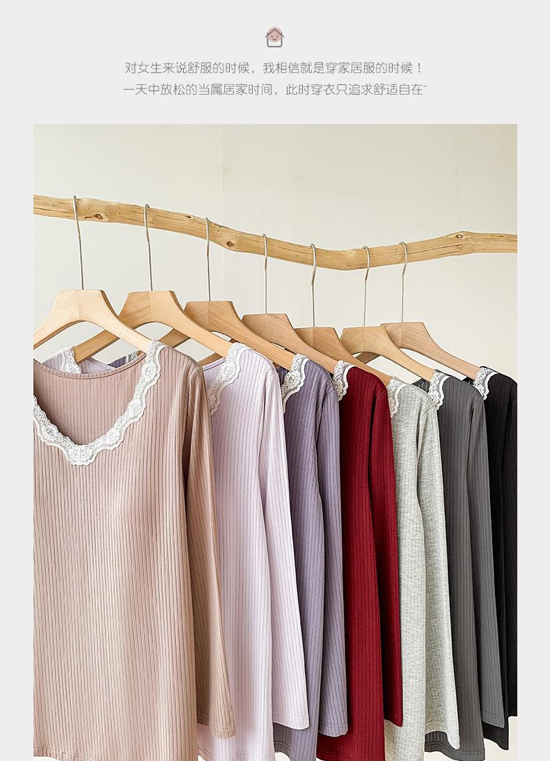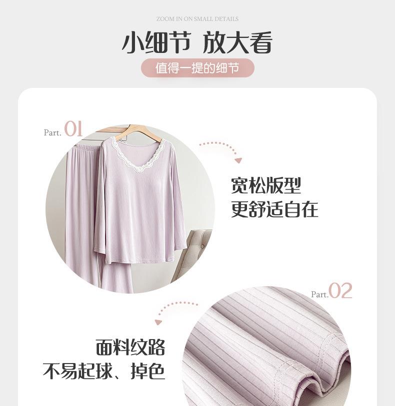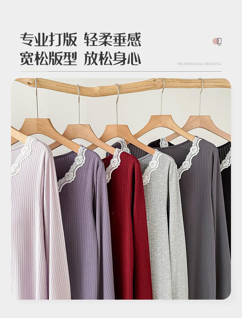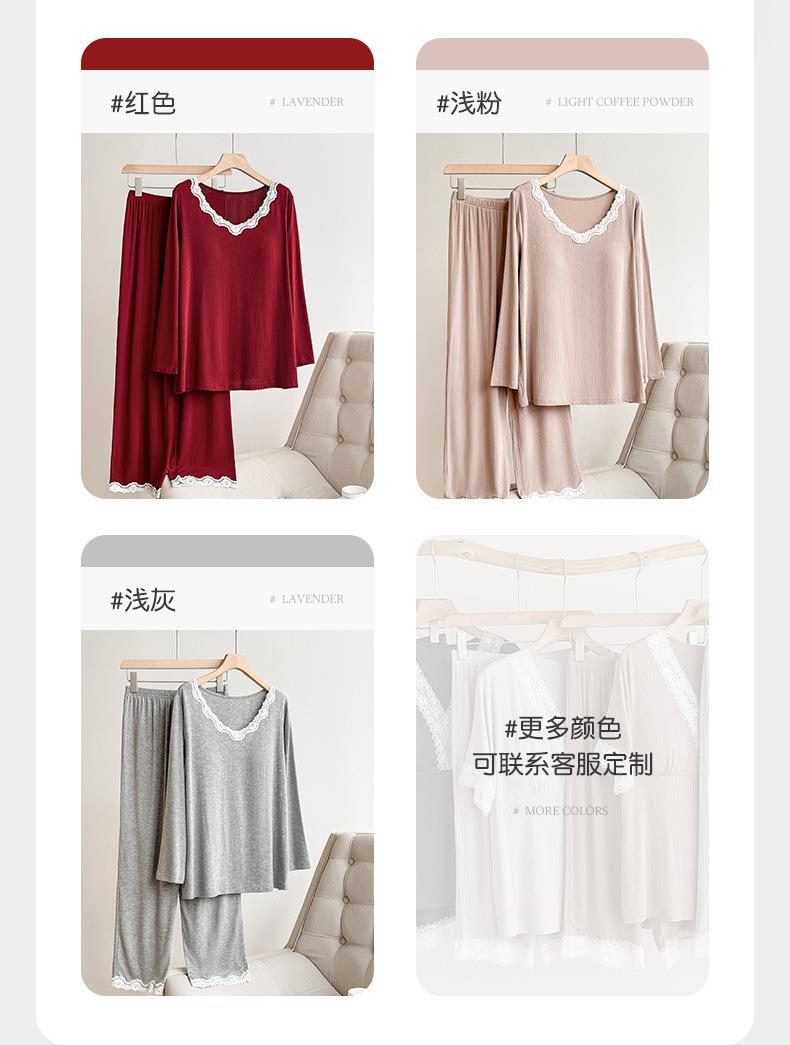 【可鲁丽风睡衣】25秋季小众蕾丝圆边睡衣套装女纯色垂感V领长袖带胸垫家居服两件套