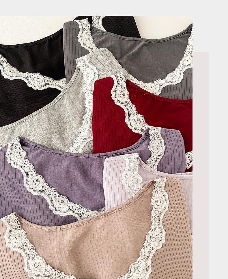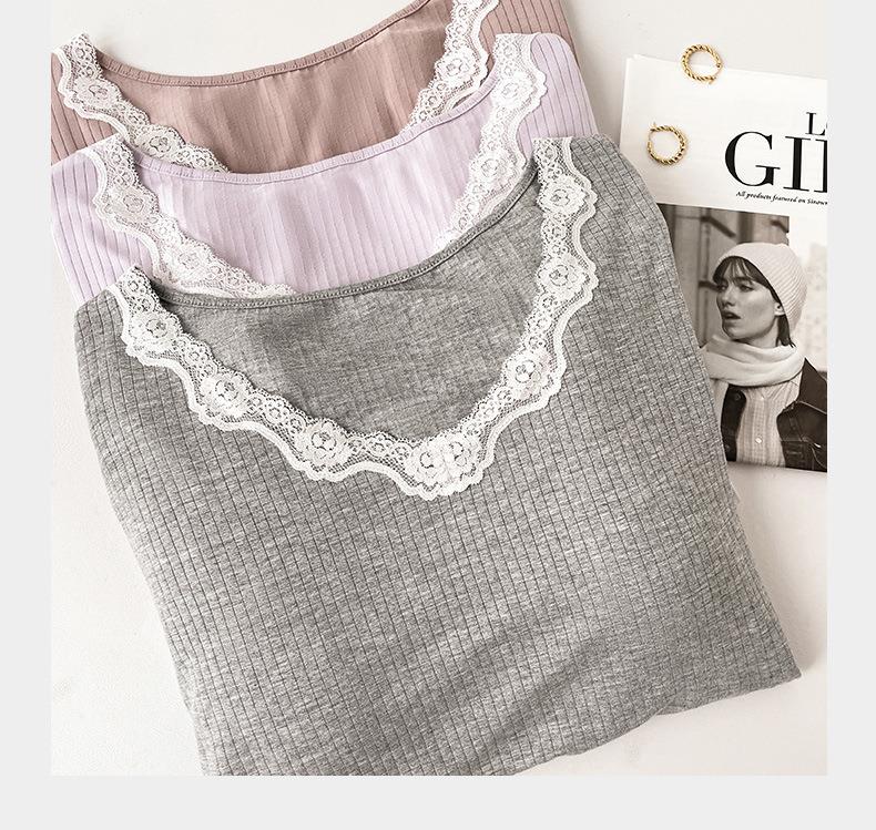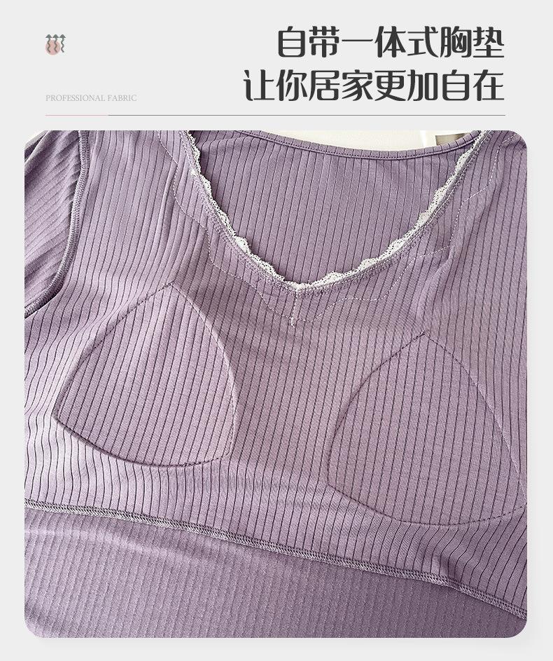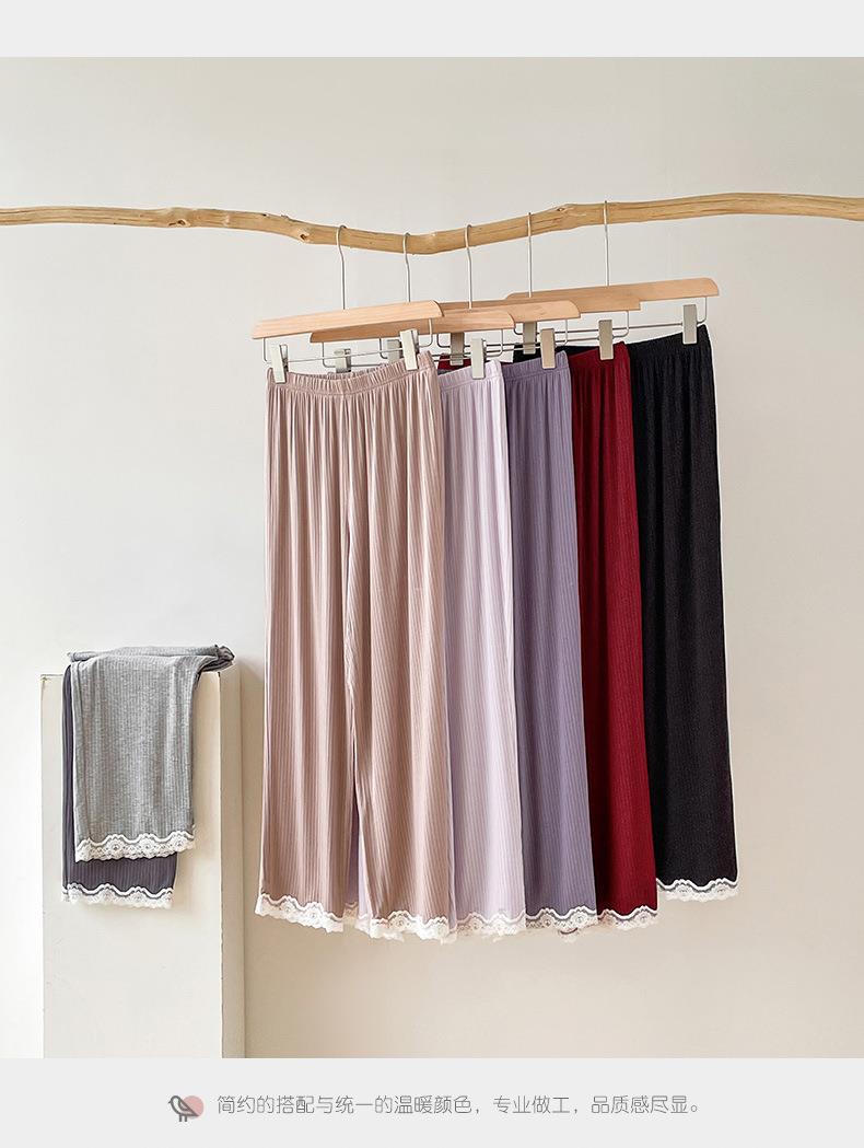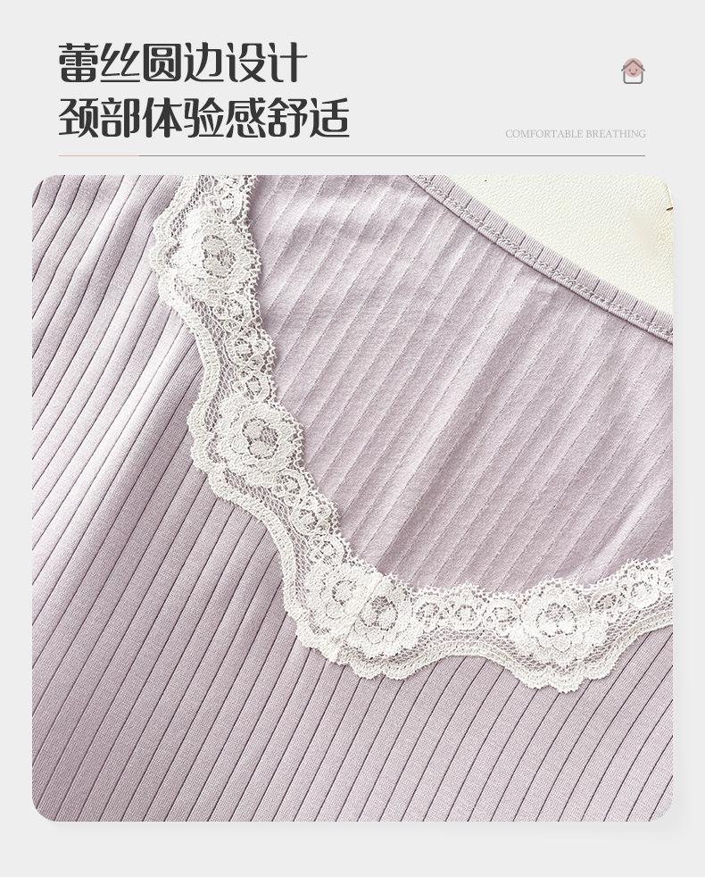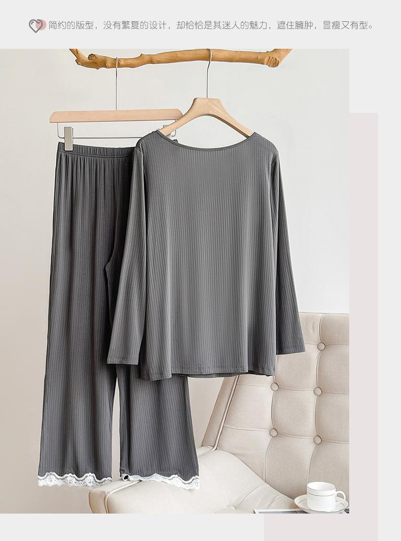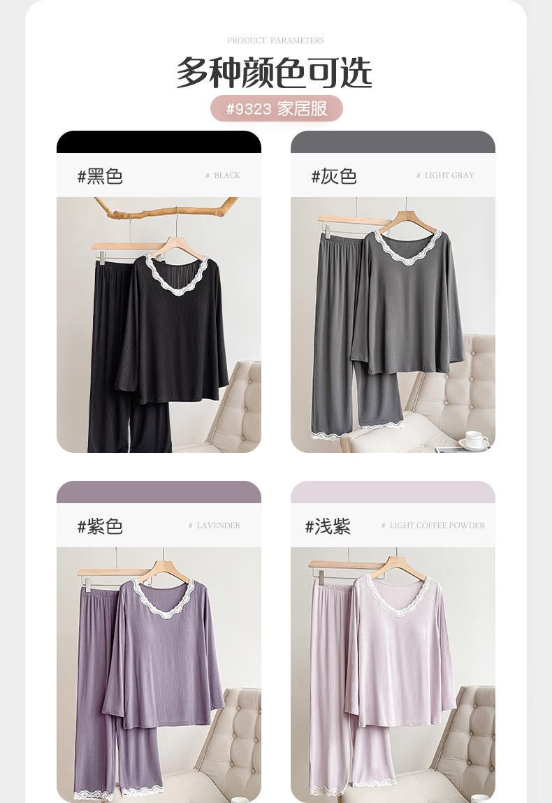 【可鲁丽风睡衣】25秋季小众蕾丝圆边睡衣套装女纯色垂感V领长袖带胸垫家居服两件套