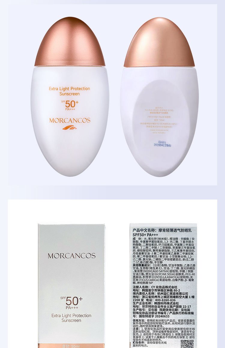 摩肯 轻薄透气防晒乳 SPF50+ PA+++ 50ml