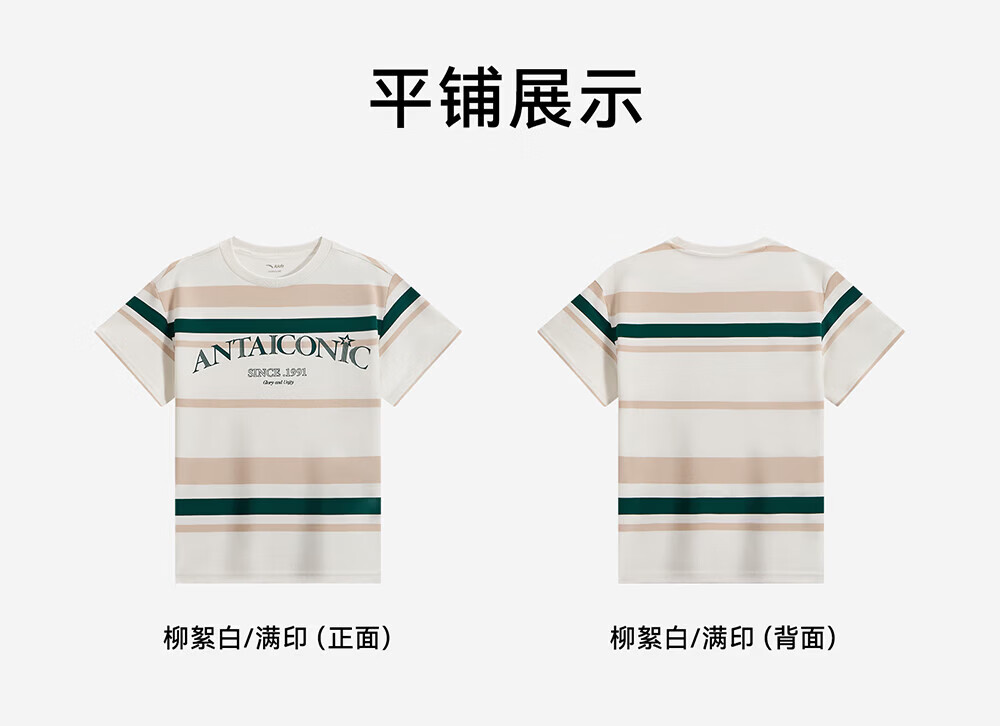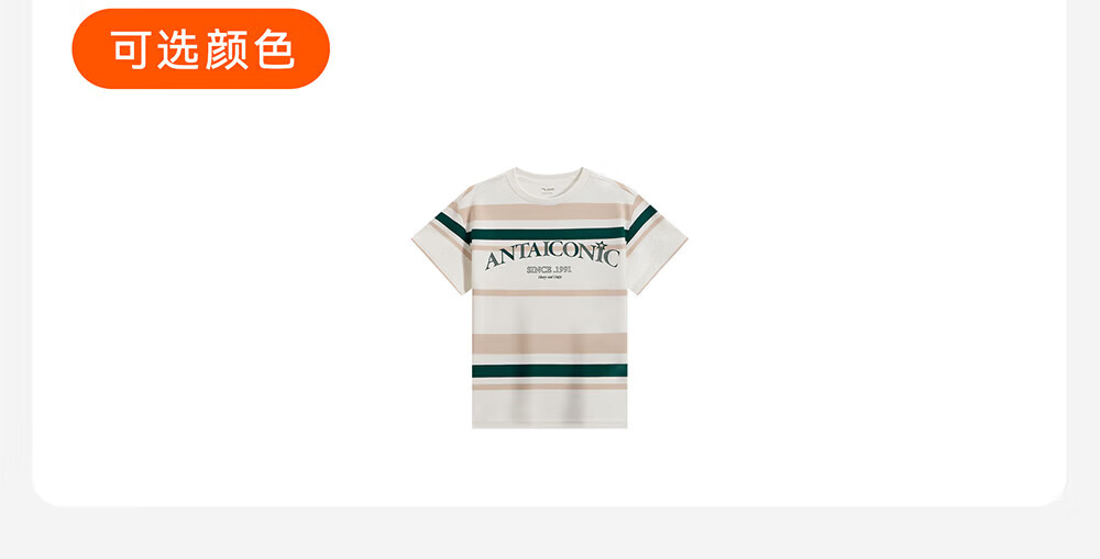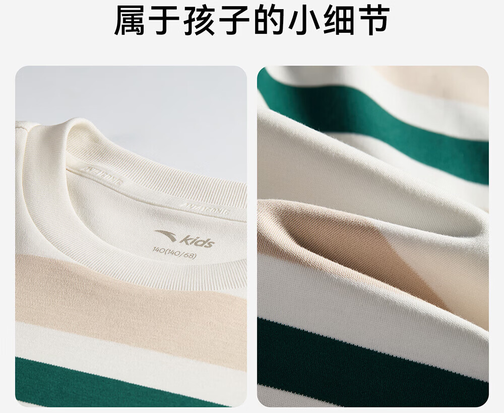 安踏儿童T恤男大童装2026夏季新品纯棉舒适透气条纹翻领短T352628107