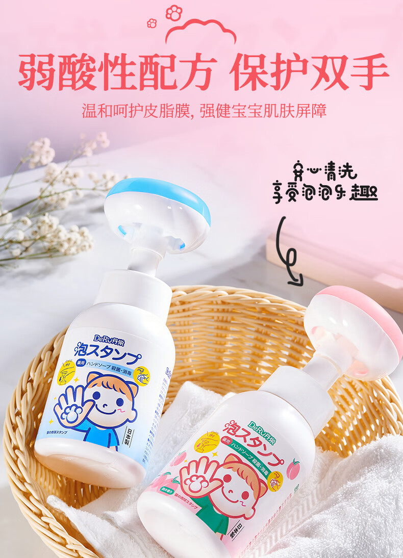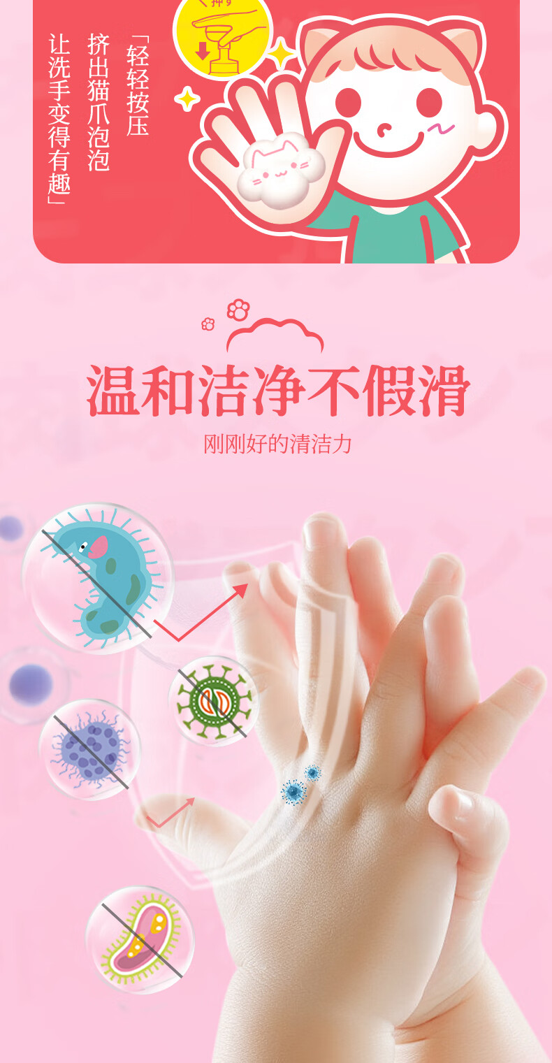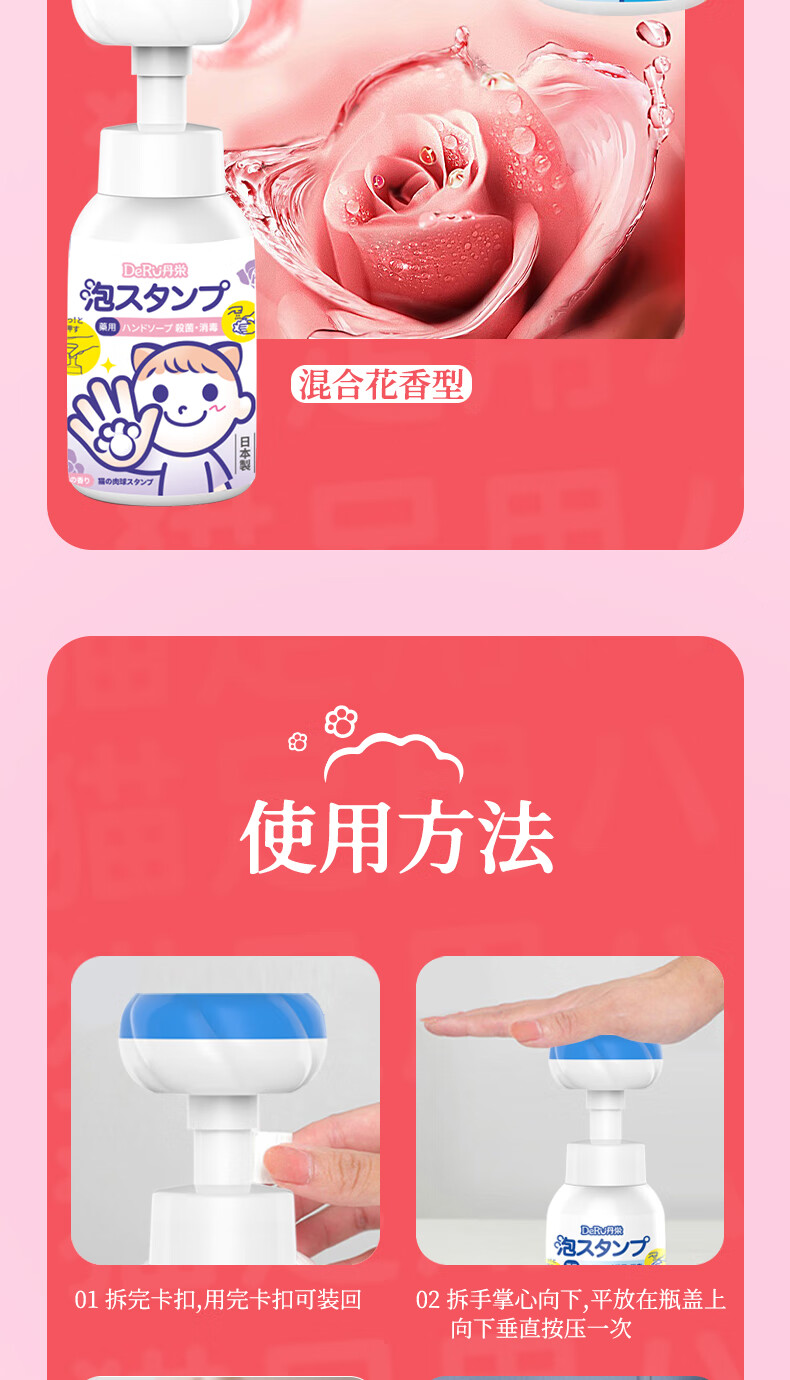 DeRU丹之荣 日本进口儿童猫爪泡泡洗手液花果香抗菌去污 300ml/瓶