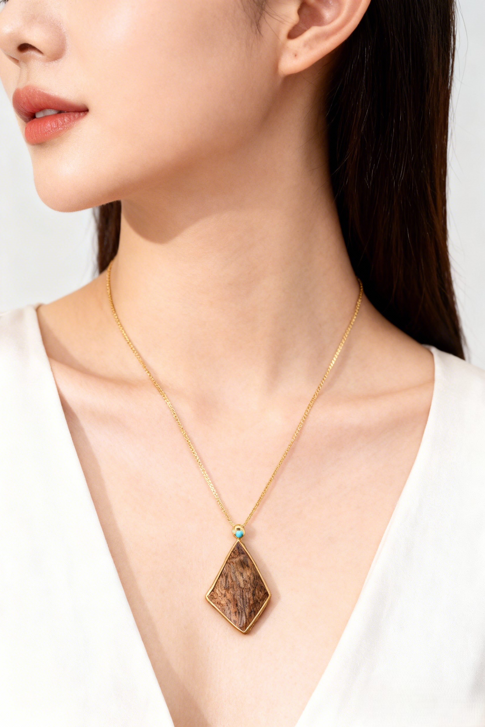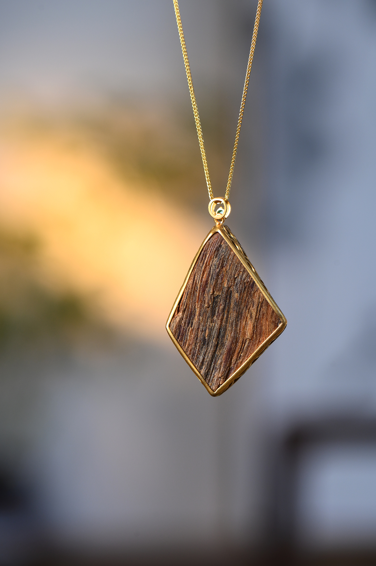 天然芽庄白奇楠包金吊坠 沉水级 SP12228