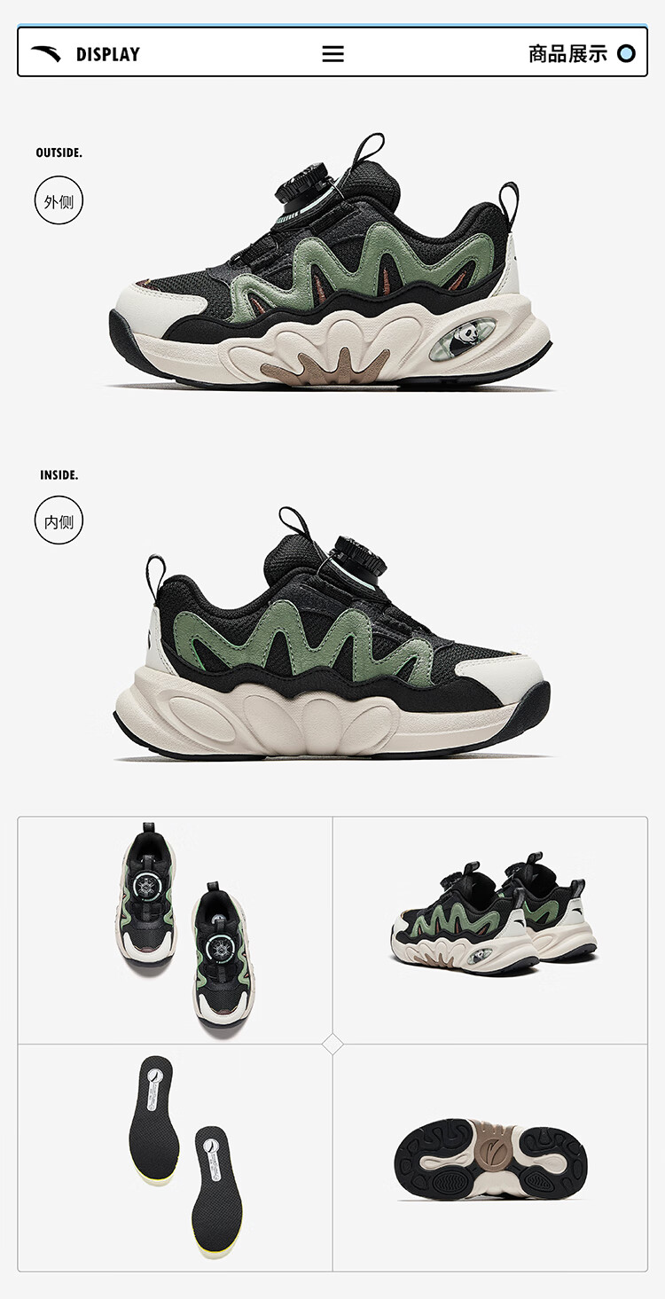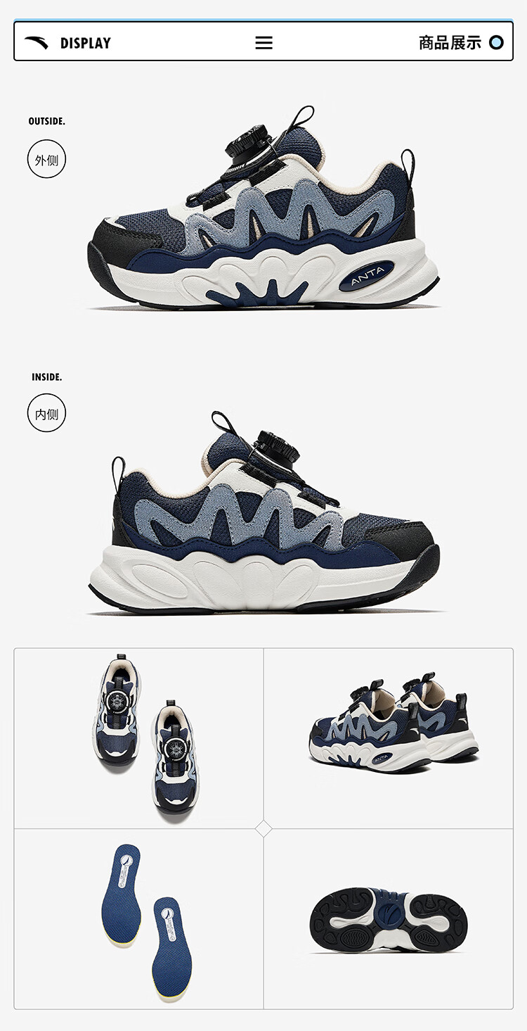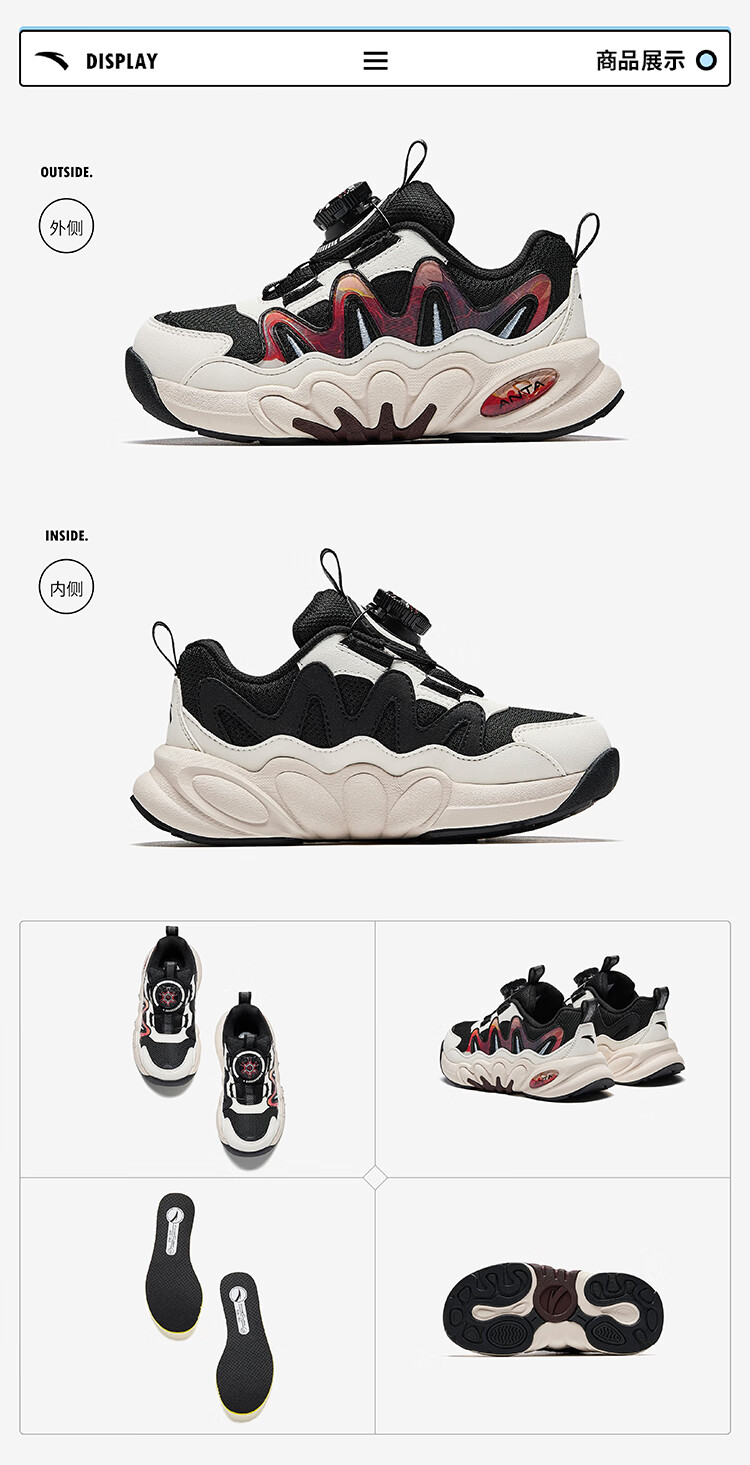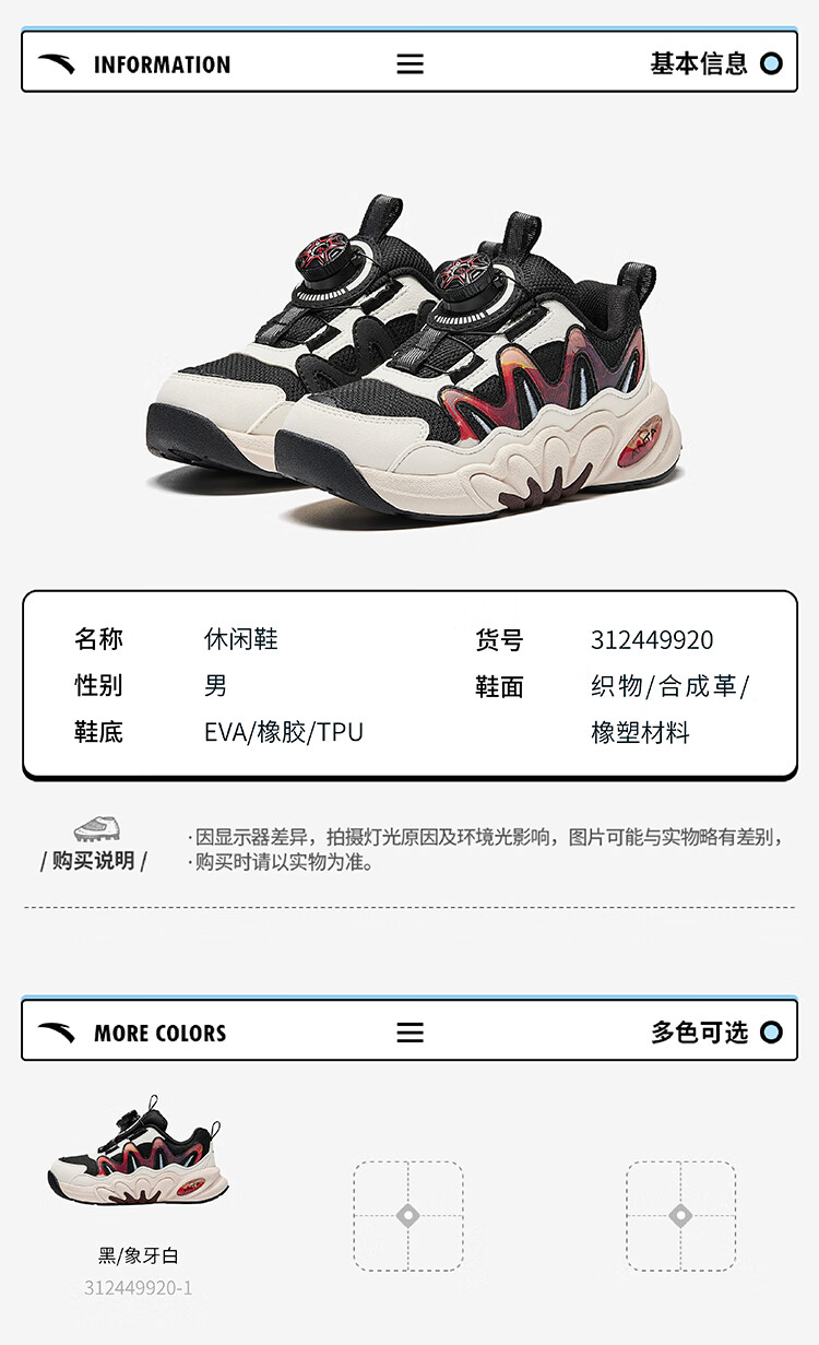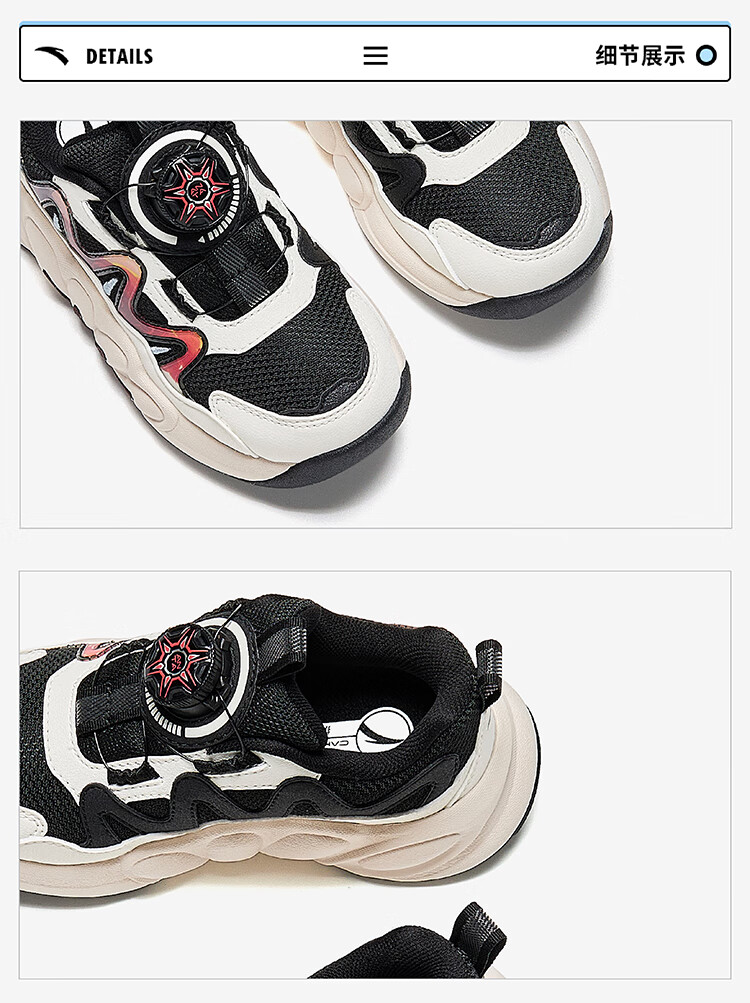 安踏儿童运动鞋男小童2024冬季犟弹科技旋钮扣多肉休闲鞋312449920