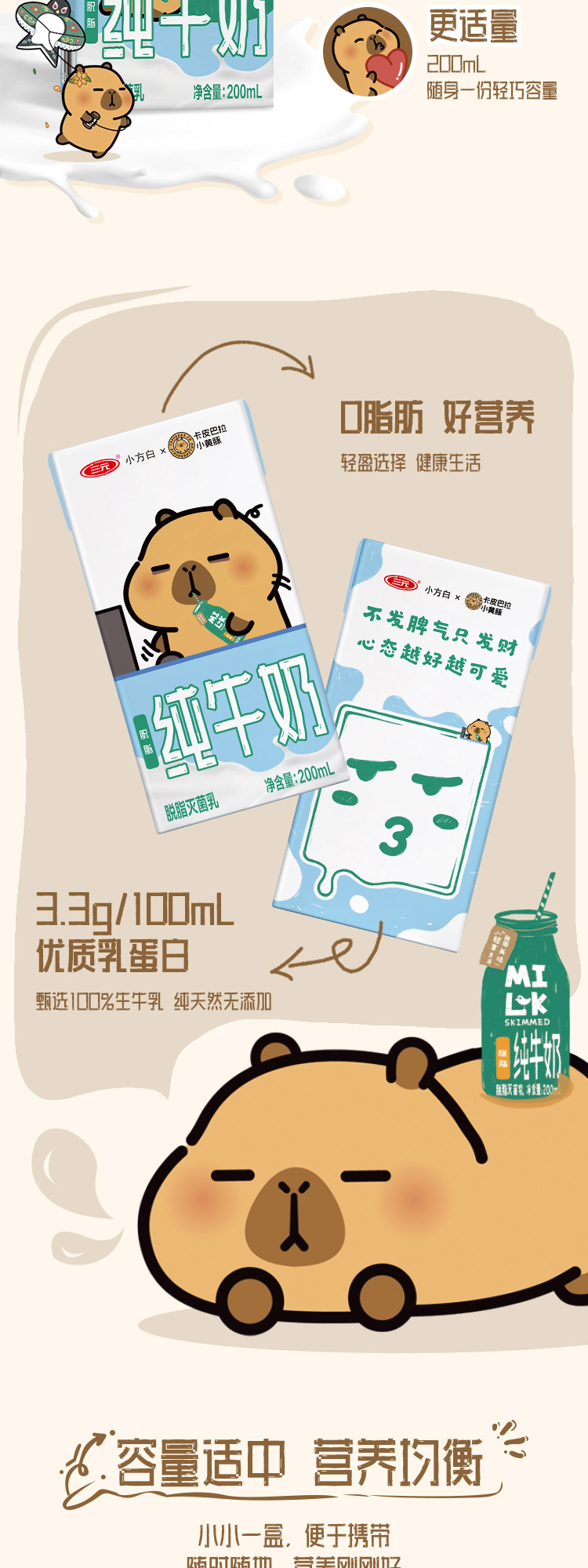 【快递到家-常温】小方白脱脂纯牛奶 200ml*24盒