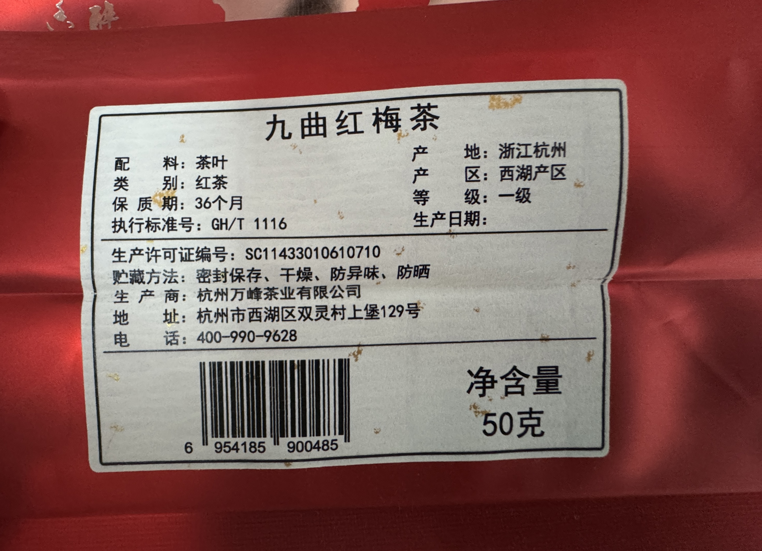 杭州红茶 浙江老字号 九曲红梅茶一级