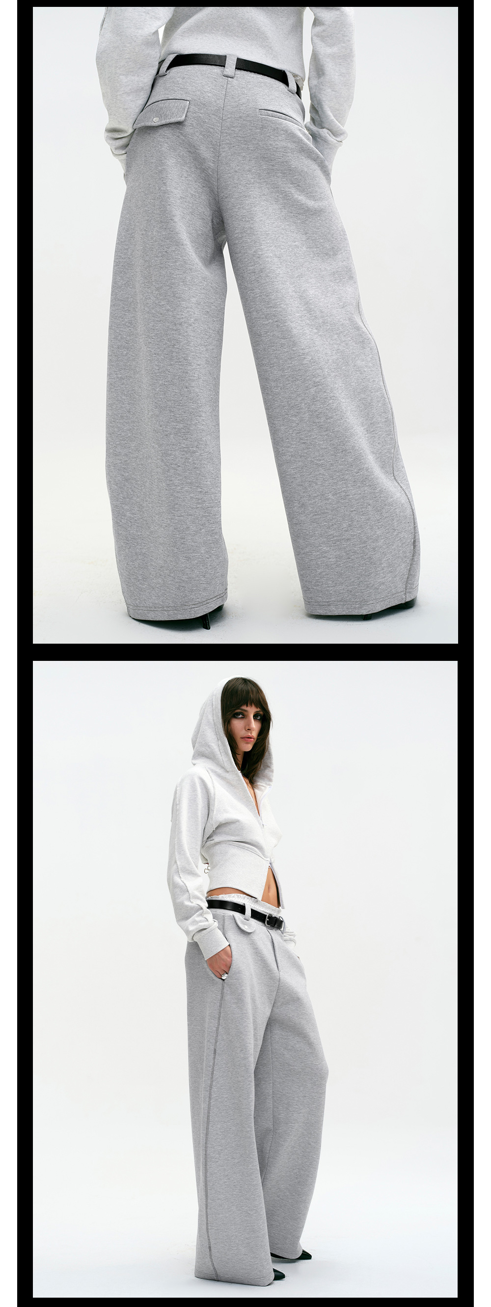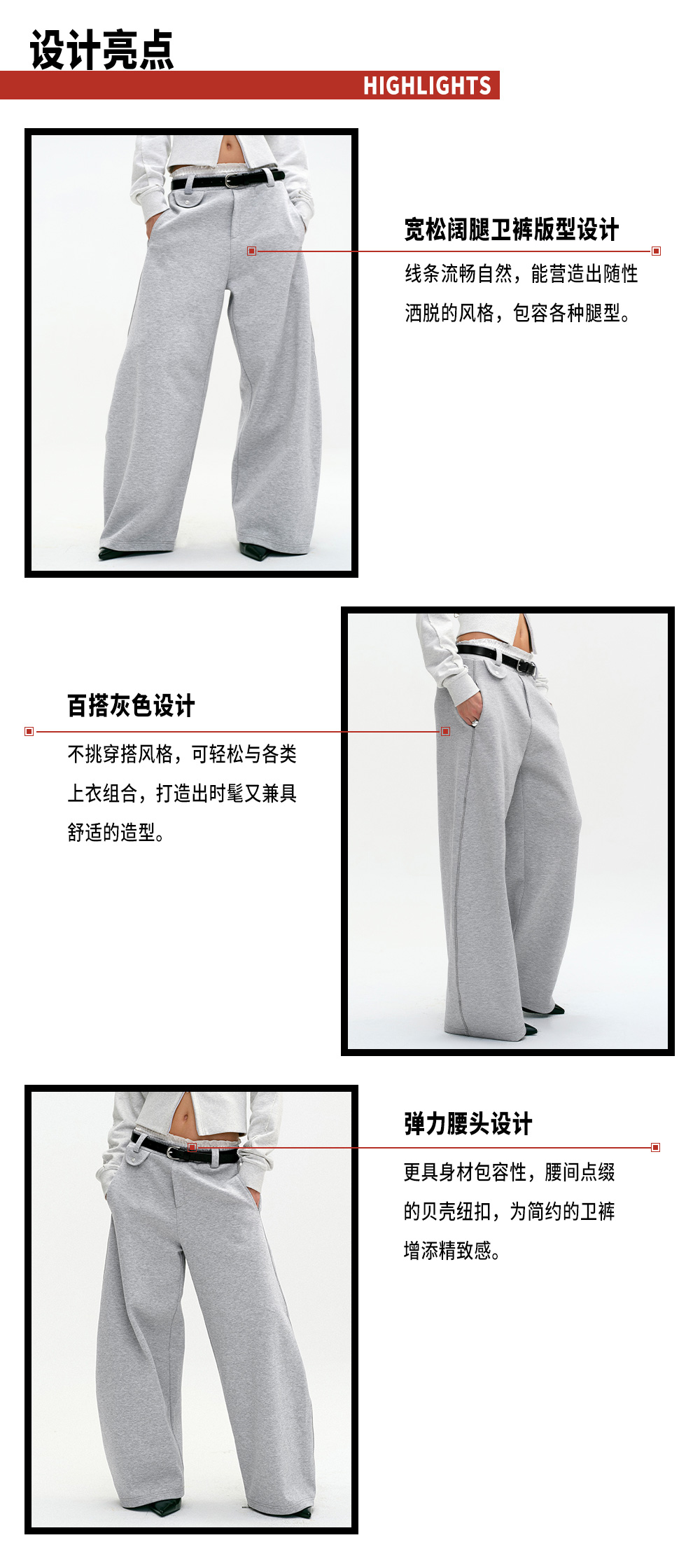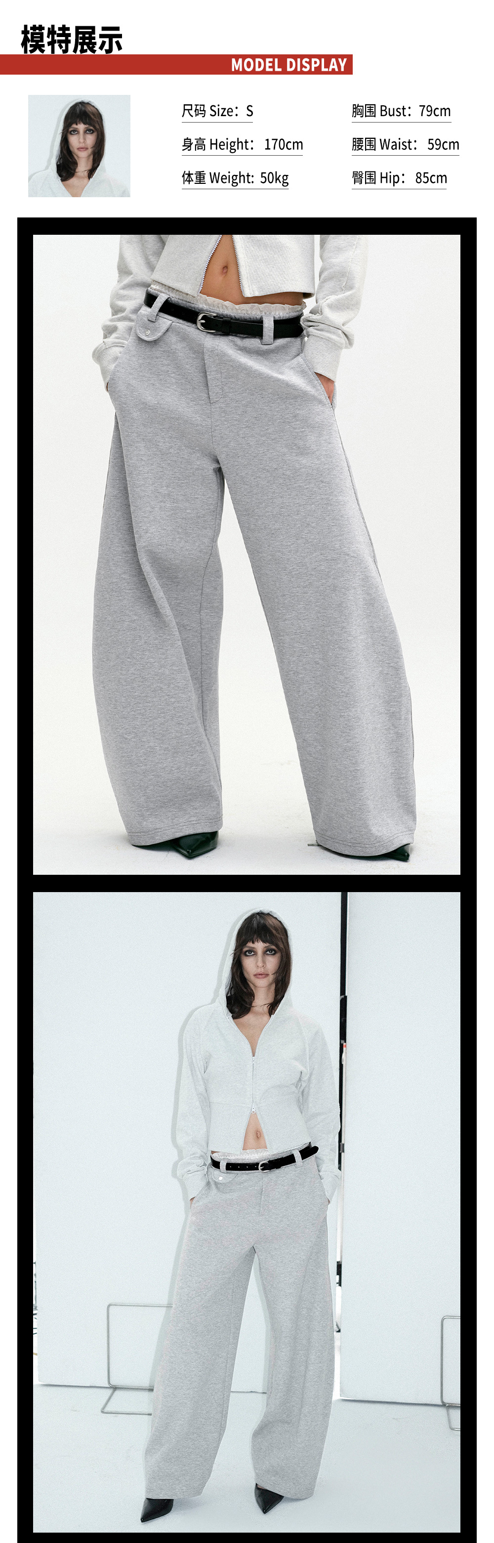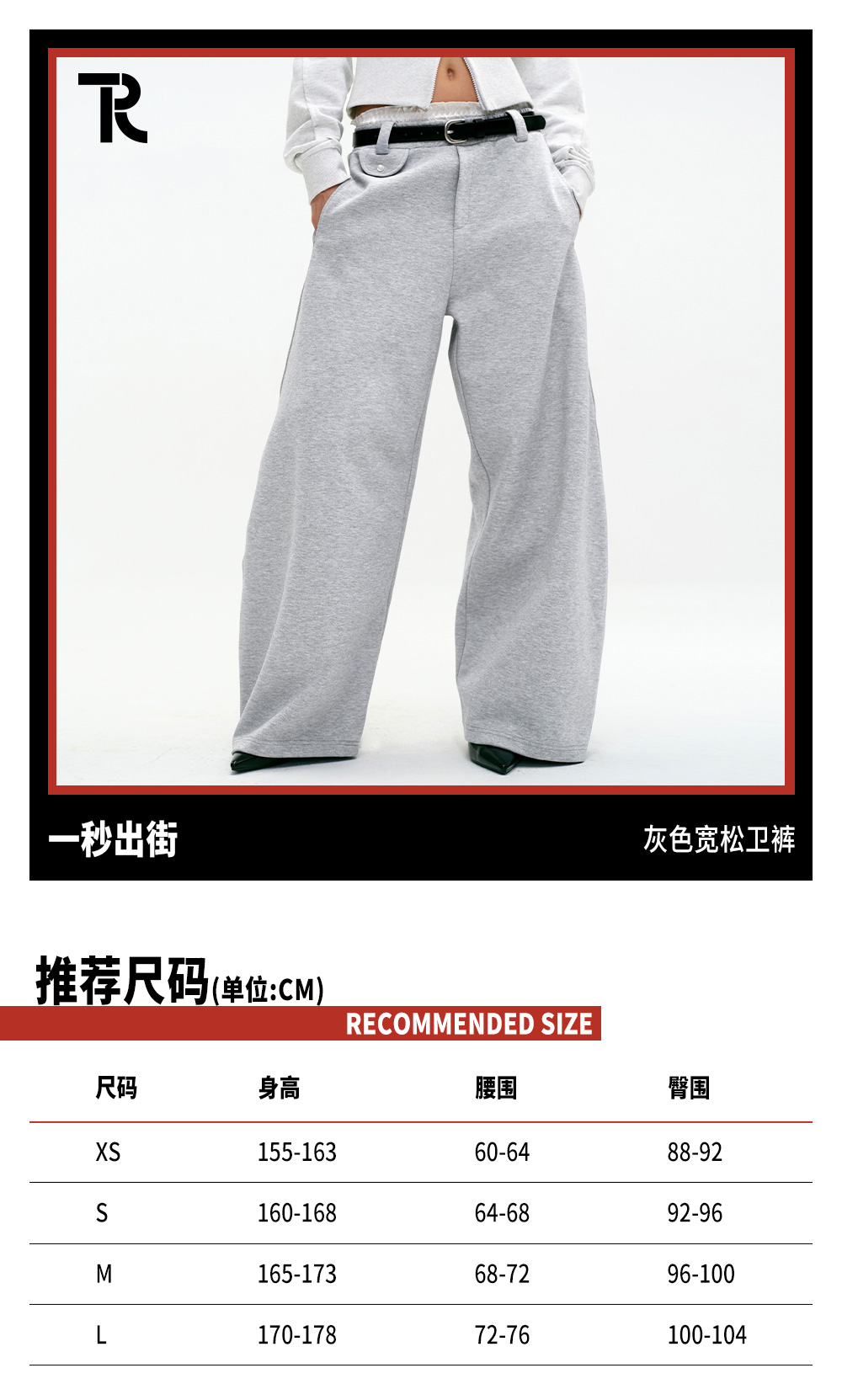 TR她热 一秒出街 灰色宽松百搭弹力松弛休闲阔腿弯刀卫裤