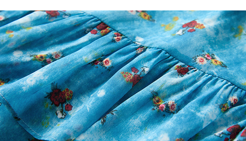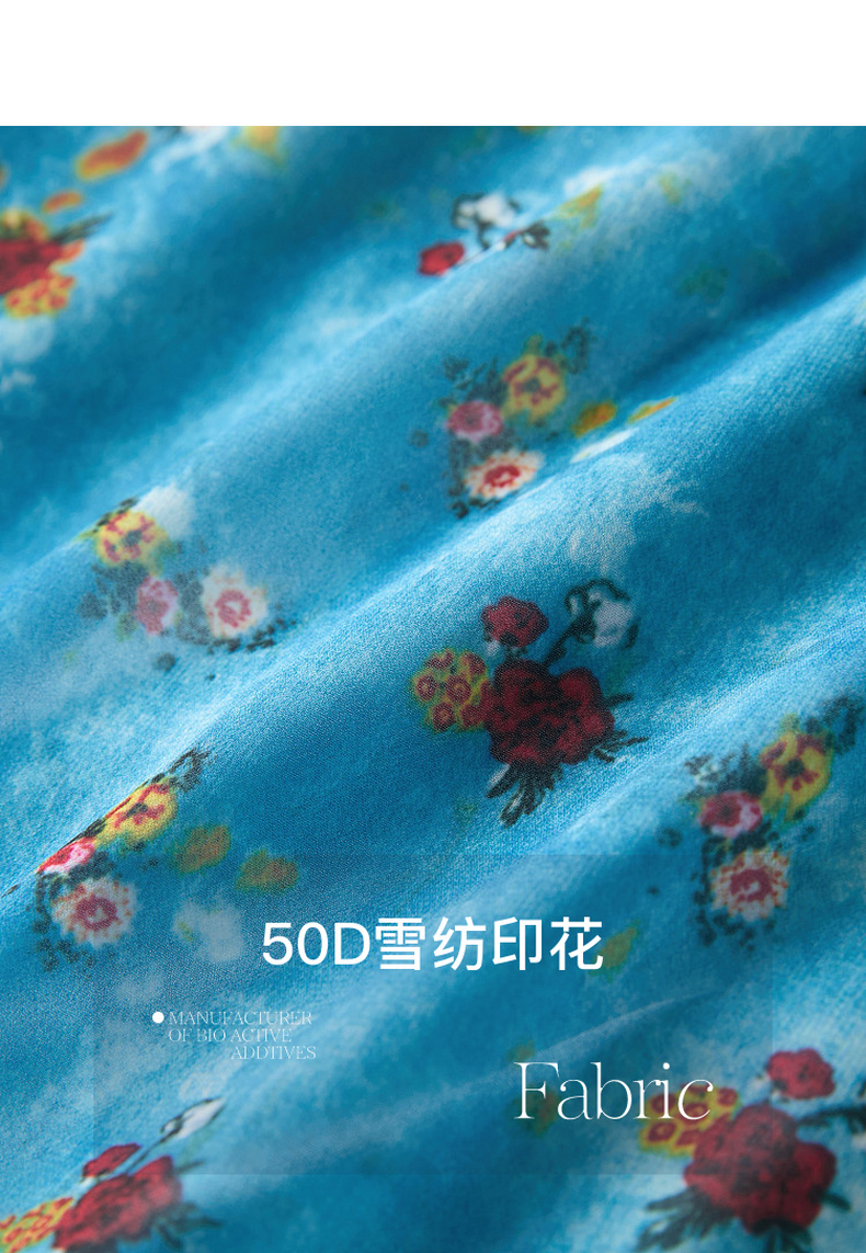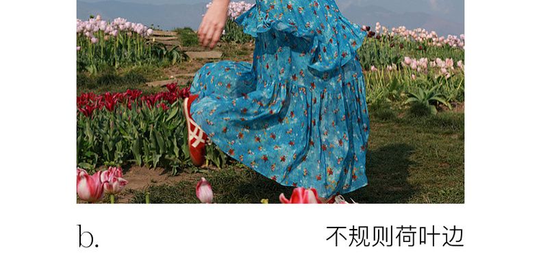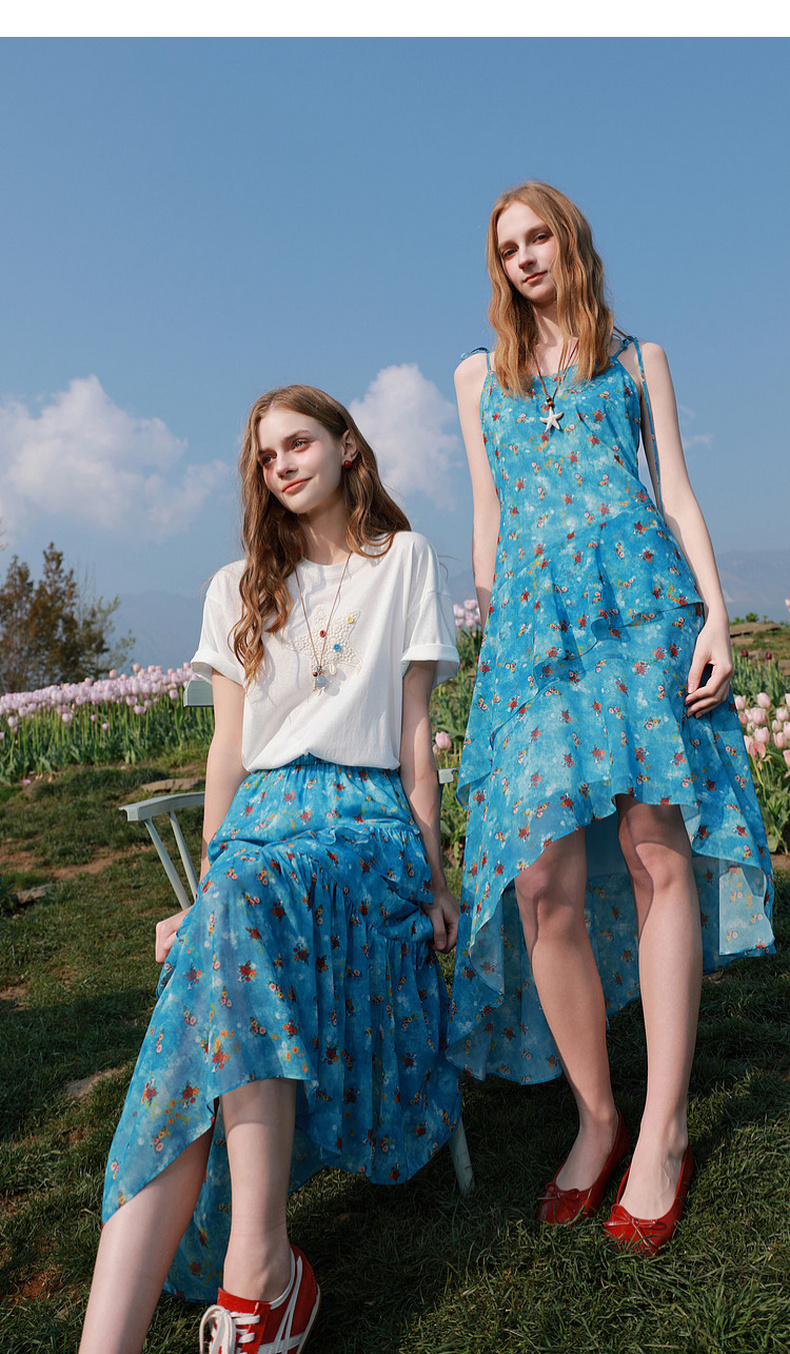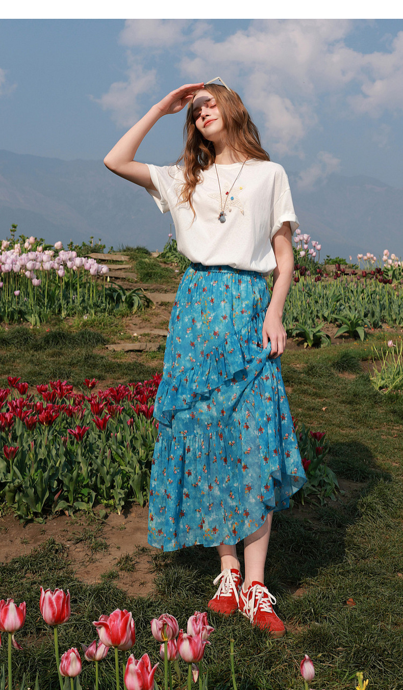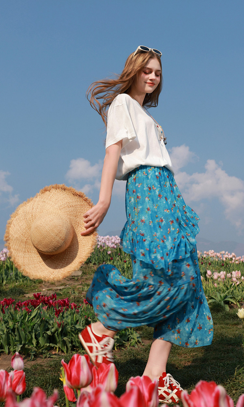 三彩2026夏季新款高腰半身裙印花荷叶边雪纺裙长裙A字裙显瘦M