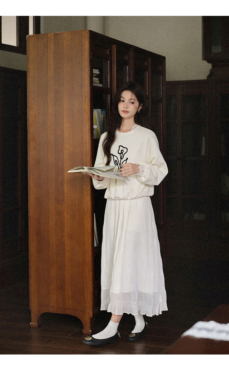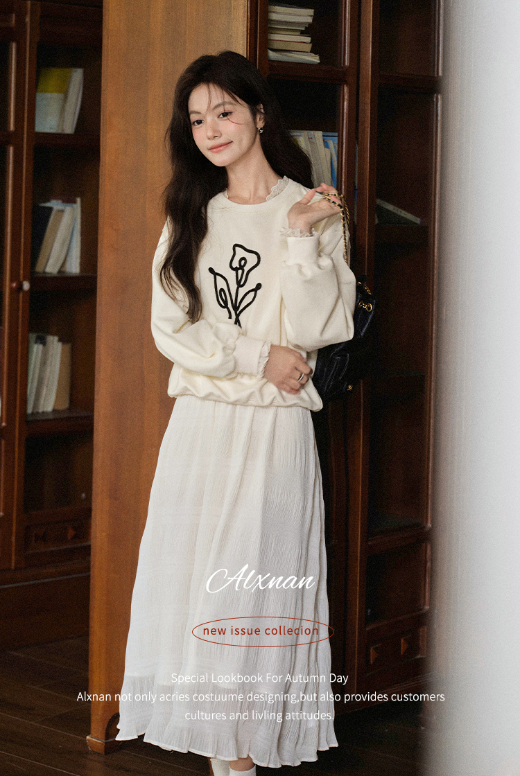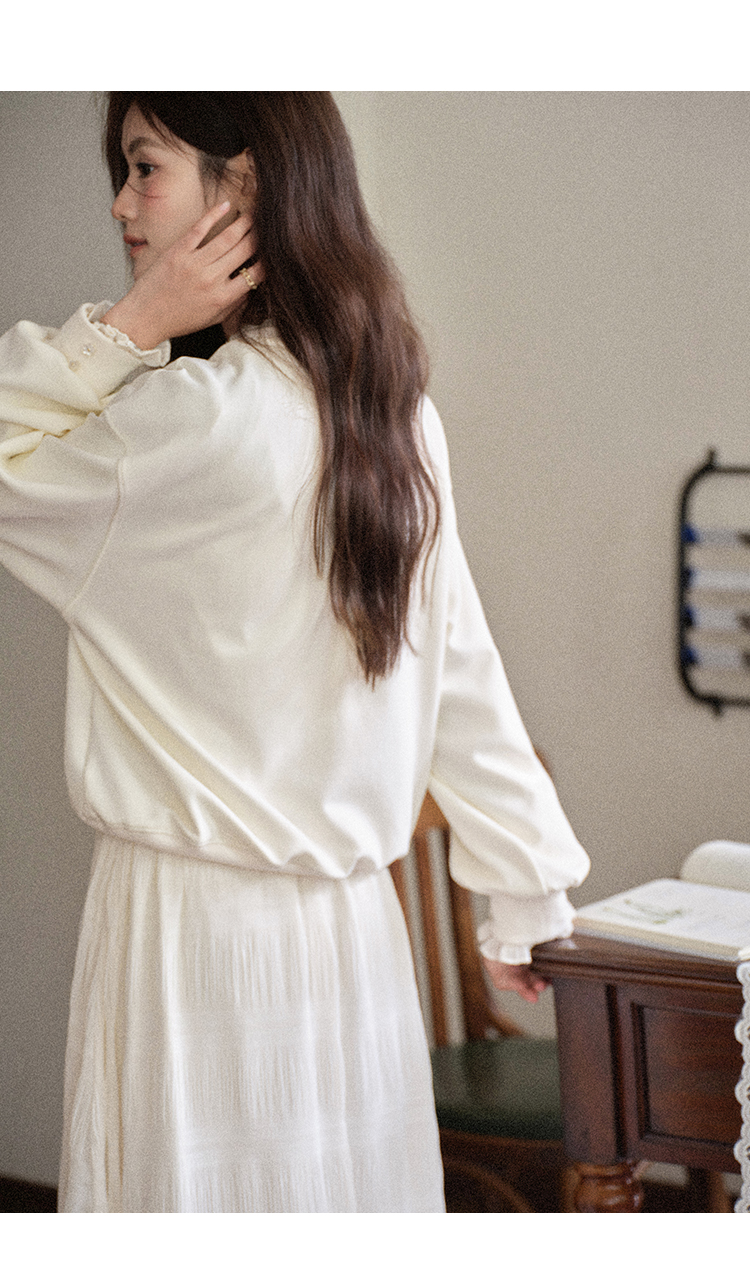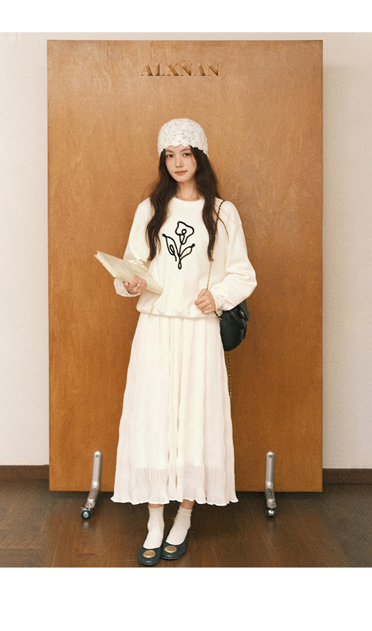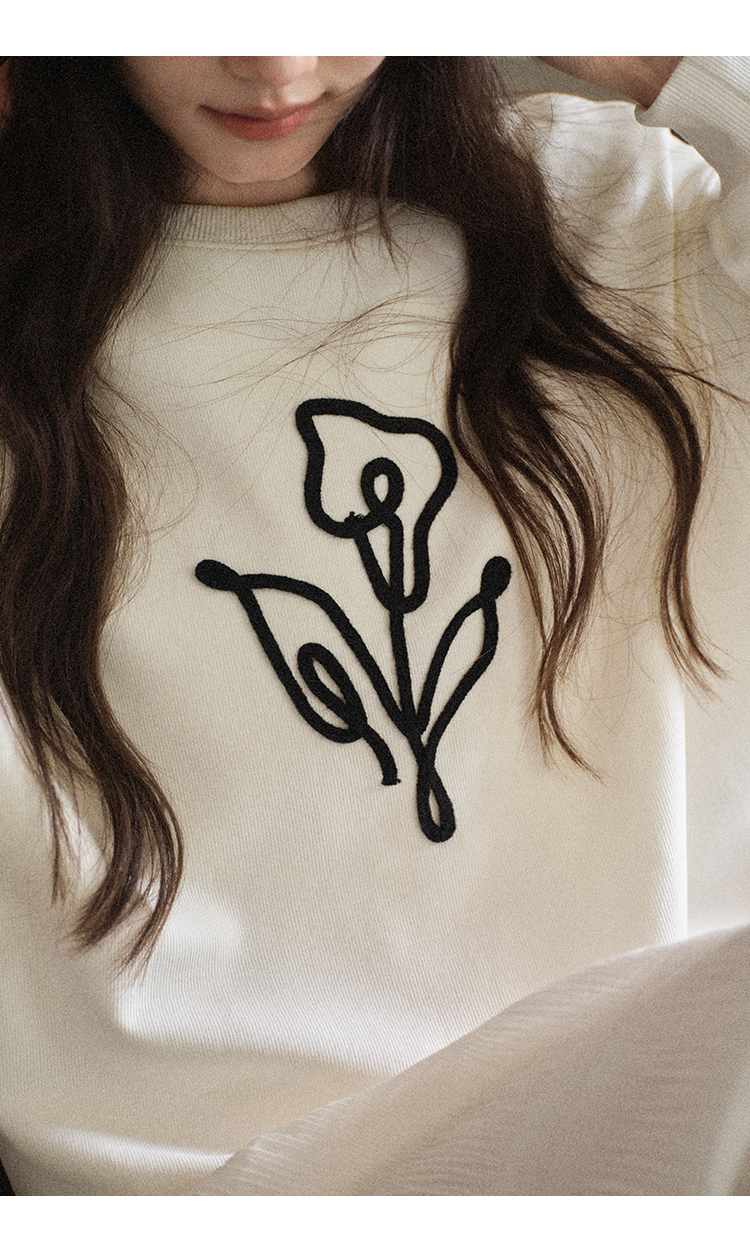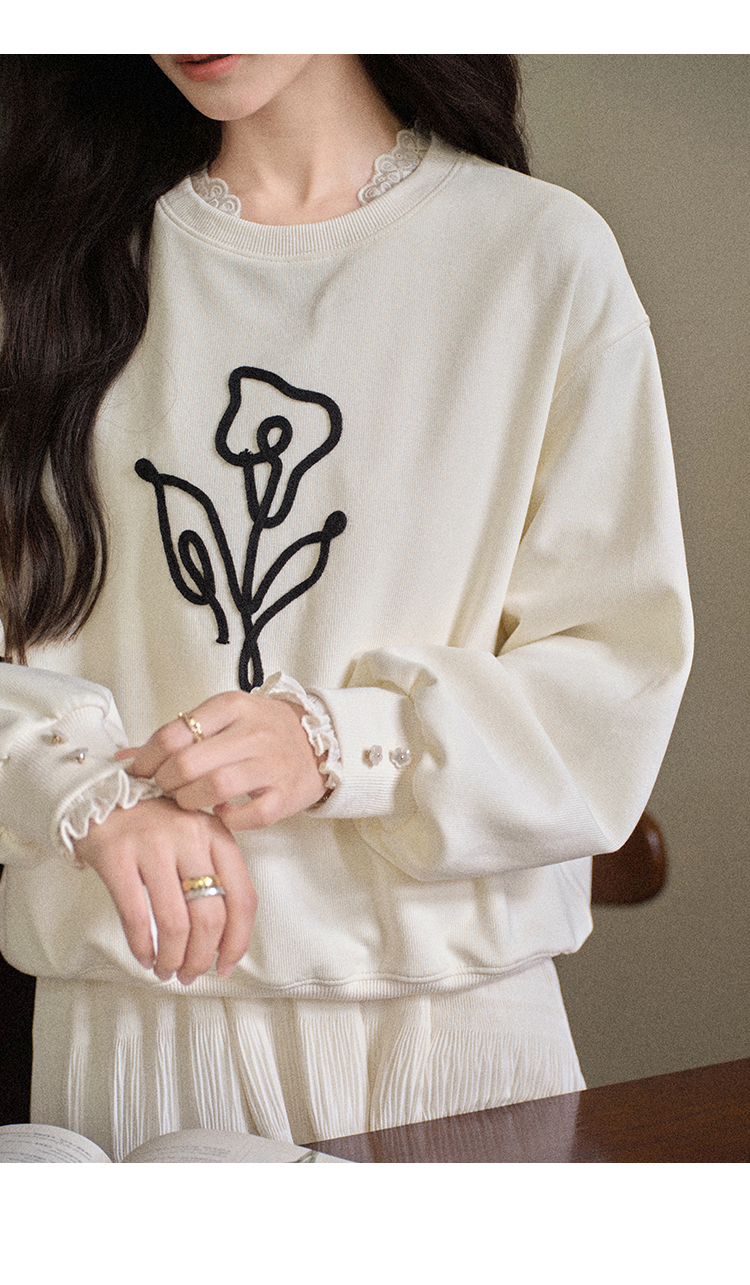 鹿向南「一握皎洁」杏色别致小花卫衣女秋季宽松百搭圆领长袖上衣