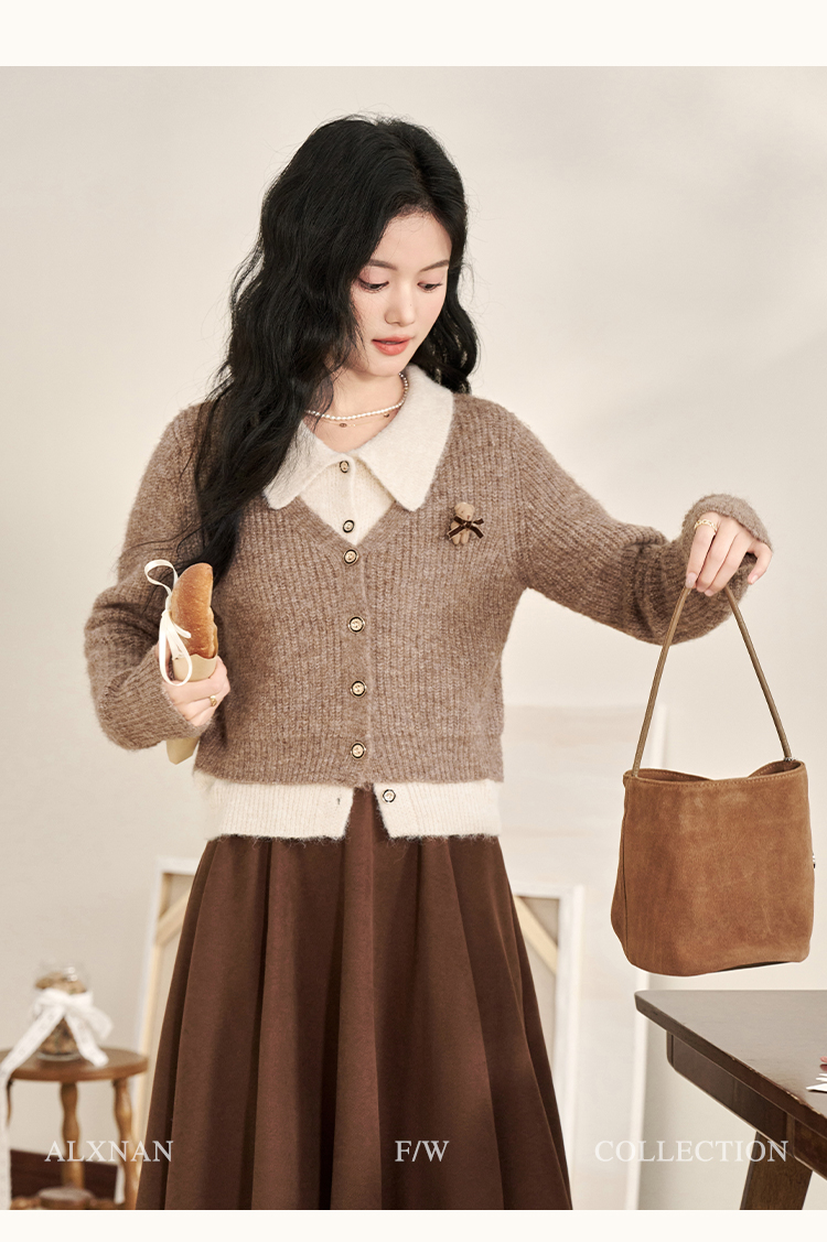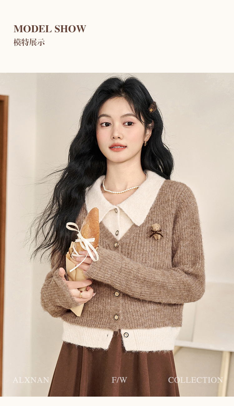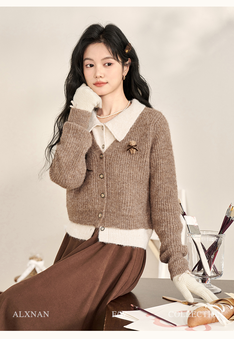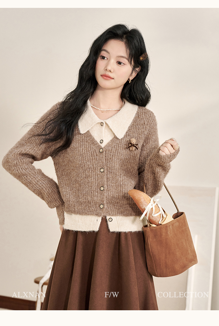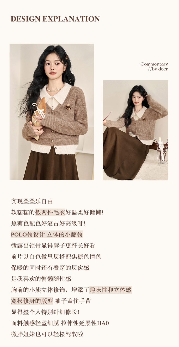 【6折秒杀】鹿向南「燕麦拿铁」黑白假两件毛衣女秋季新款气质显瘦上衣L51016-2