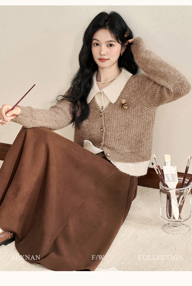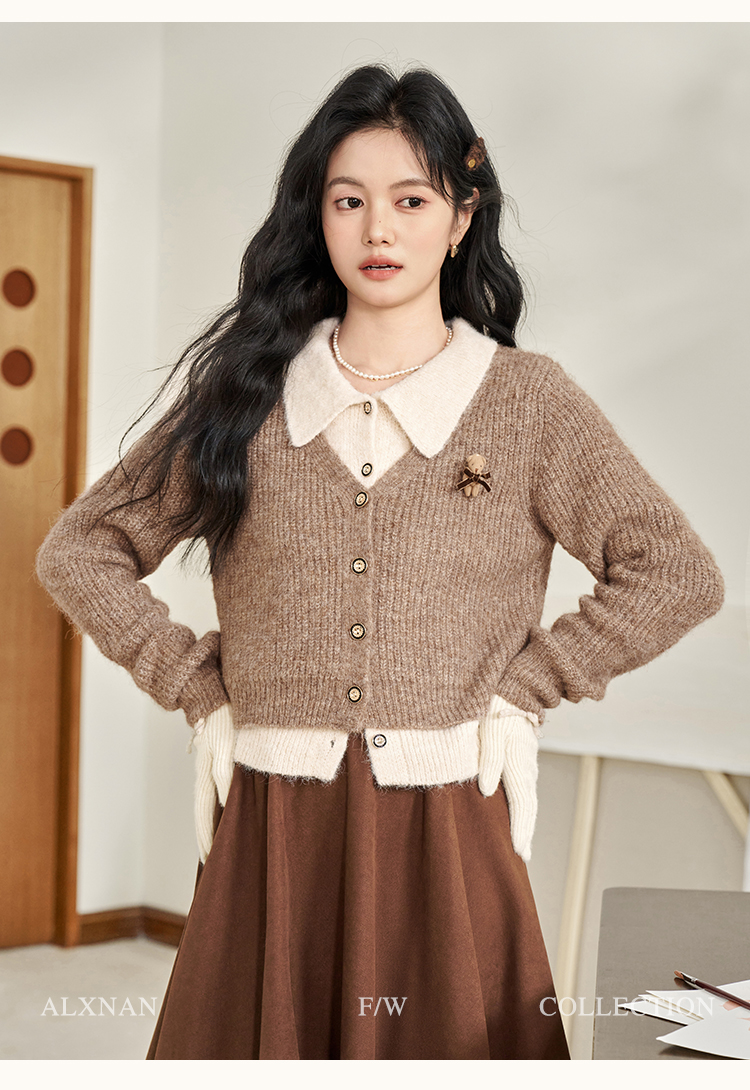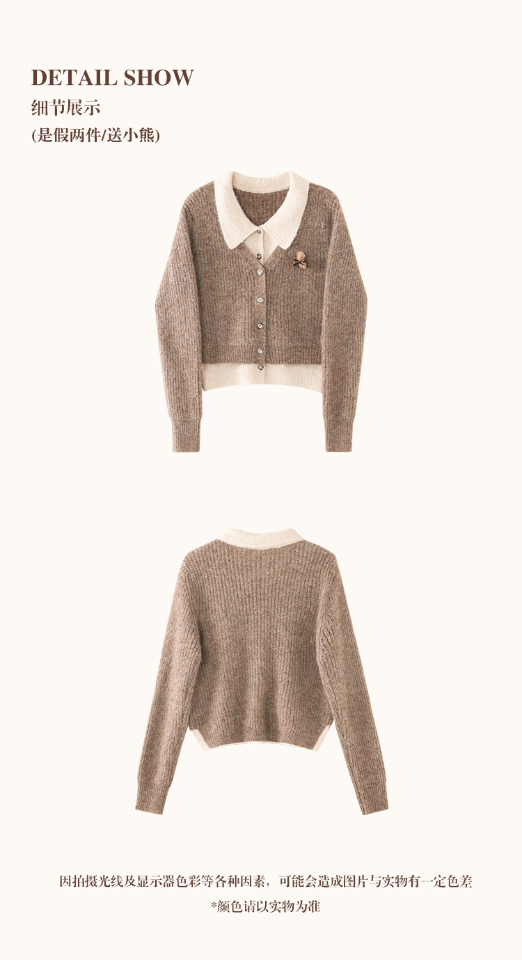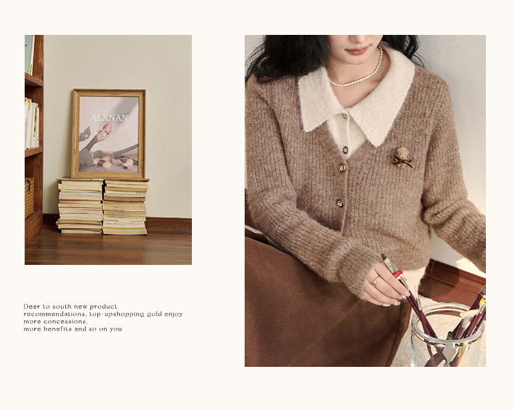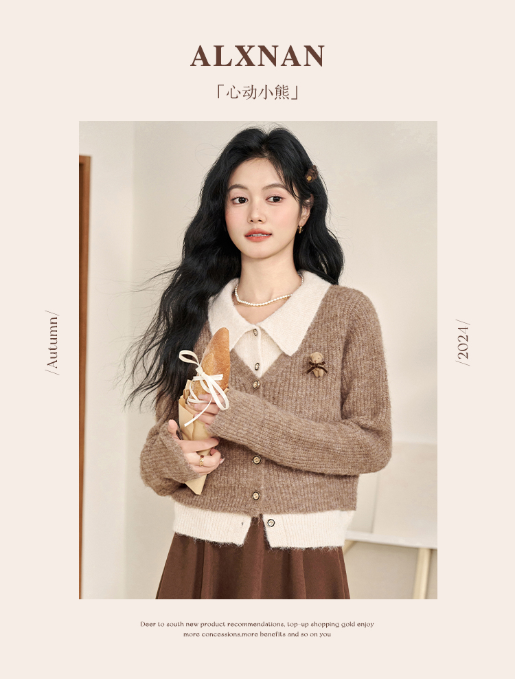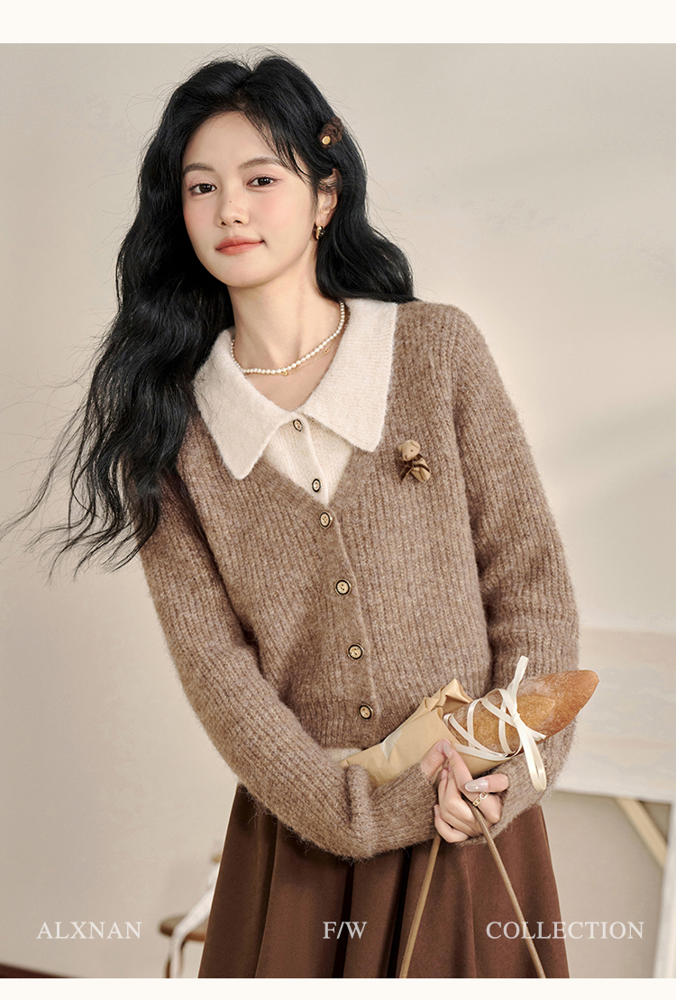【6折秒杀】鹿向南「燕麦拿铁」黑白假两件毛衣女秋季新款气质显瘦上衣L51016-2