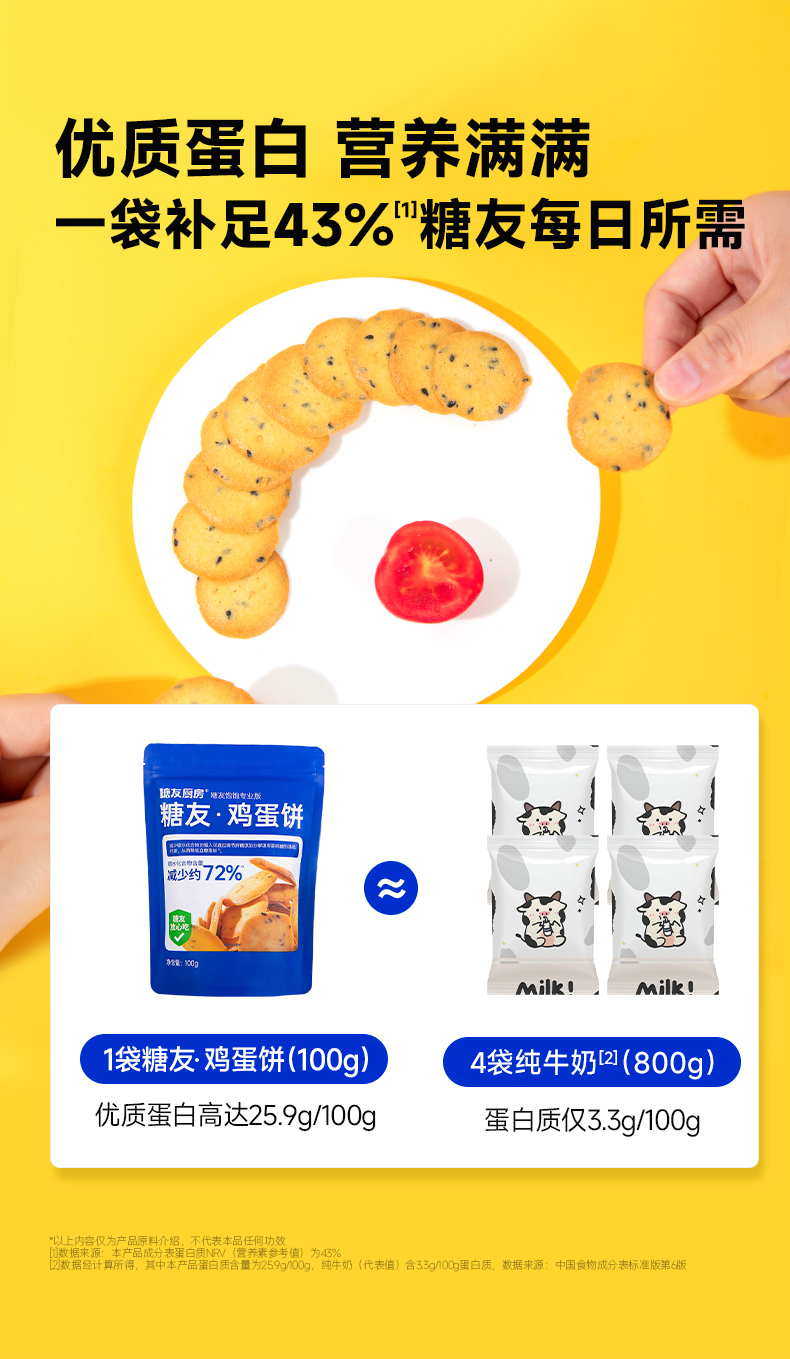 已下架11.11 专享价【蛋香浓郁】糖友厨房 糖友·鸡蛋饼 100g/袋 鸡蛋含量>40%