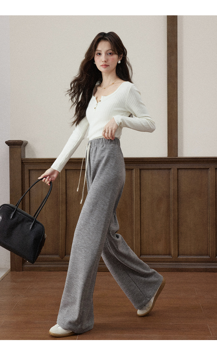 【6折秒杀】鹿向南「悠型漫步」多色百搭休闲直筒裤女秋冬新款宽松阔腿长裤子