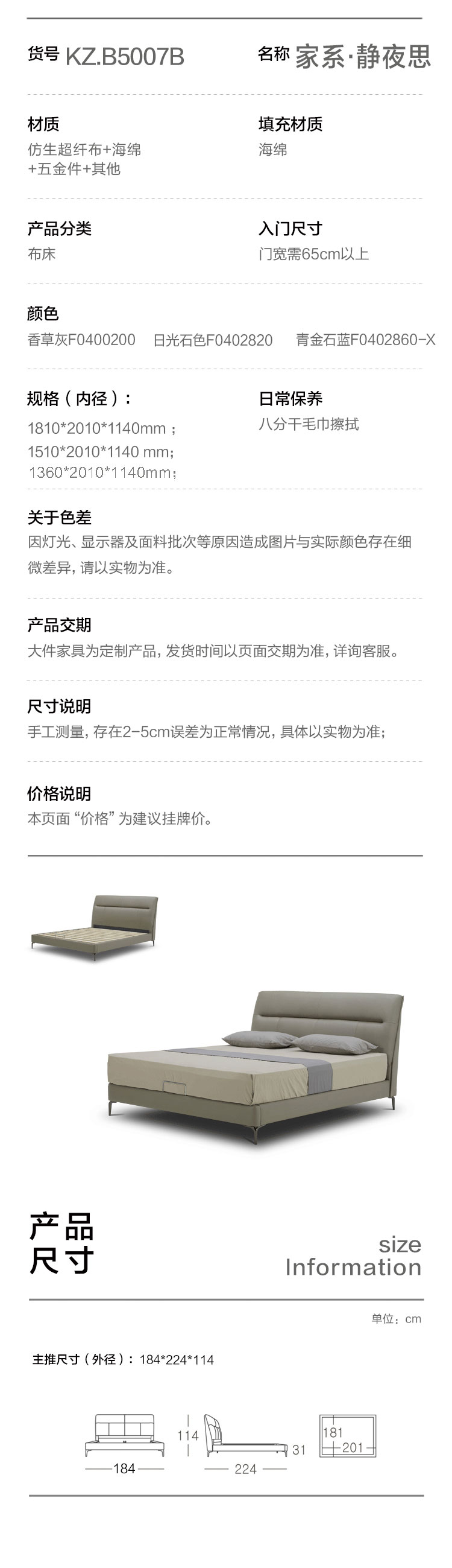 顾家家居整装 现代简约 布艺软床 KZ.B5007B静夜思
