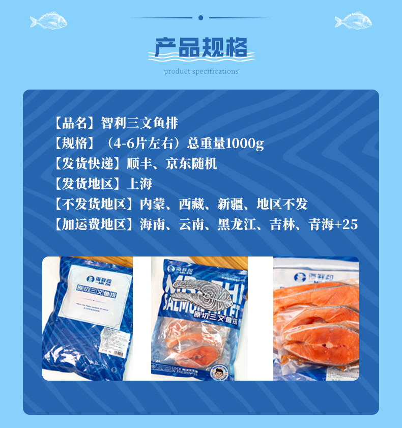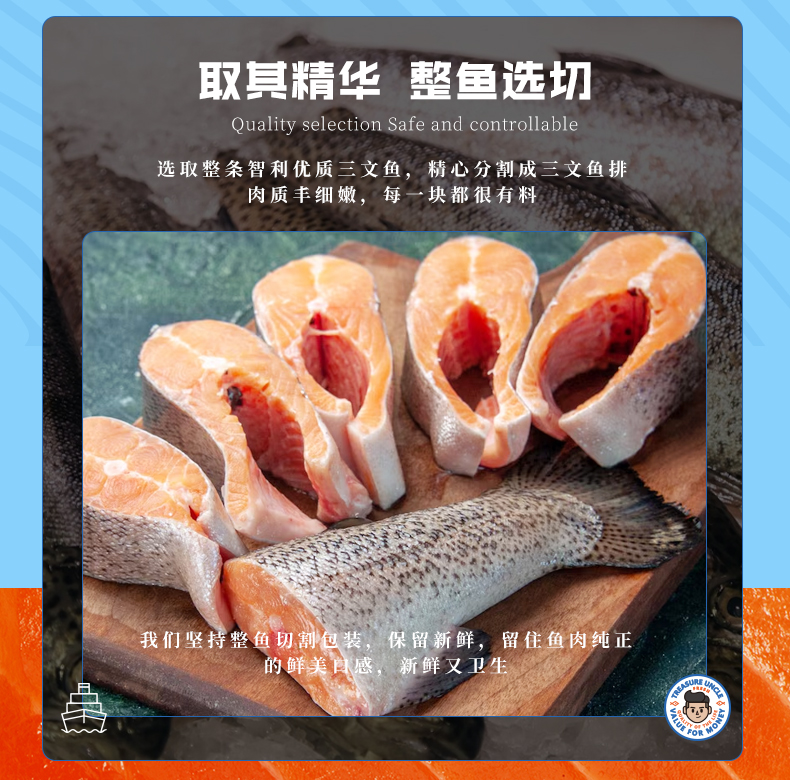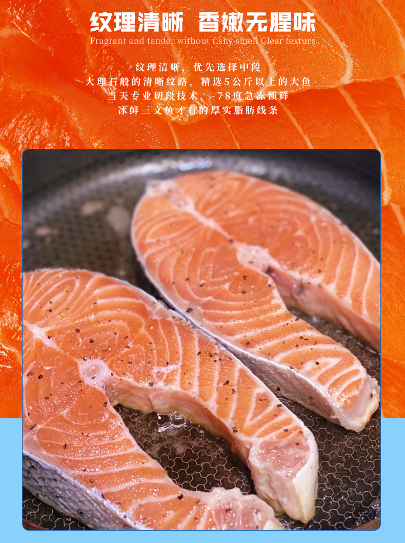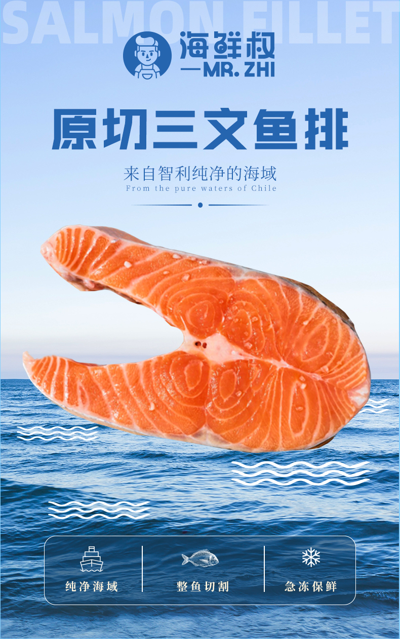 【品质甄选】海鲜大叔 智利原切三文鱼排 1kg/袋 4-6片 纹理清晰香嫩无腥味