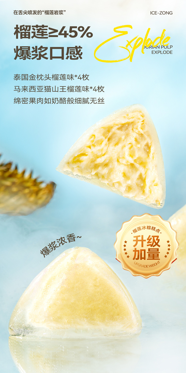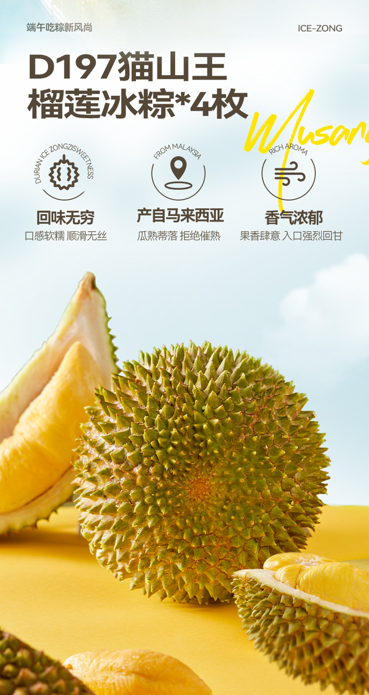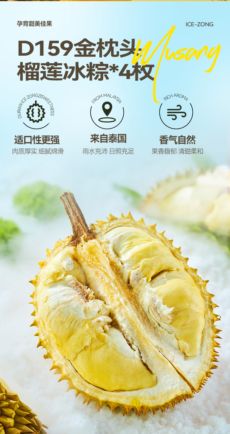 猫山王+金枕榴莲冰粽组合铁盒装432g(金枕榴莲4枚+猫山王榴莲4枚 (配礼袋)