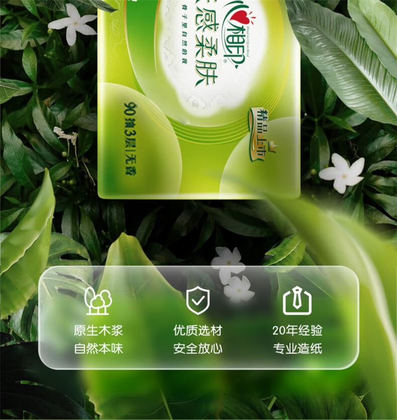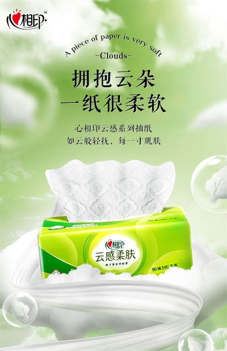 心相印抽纸云感系列90抽18包三层立体压花塑装纸面巾箱装