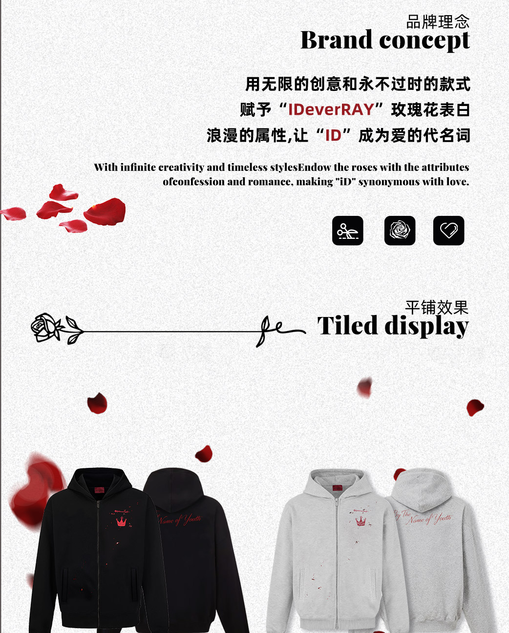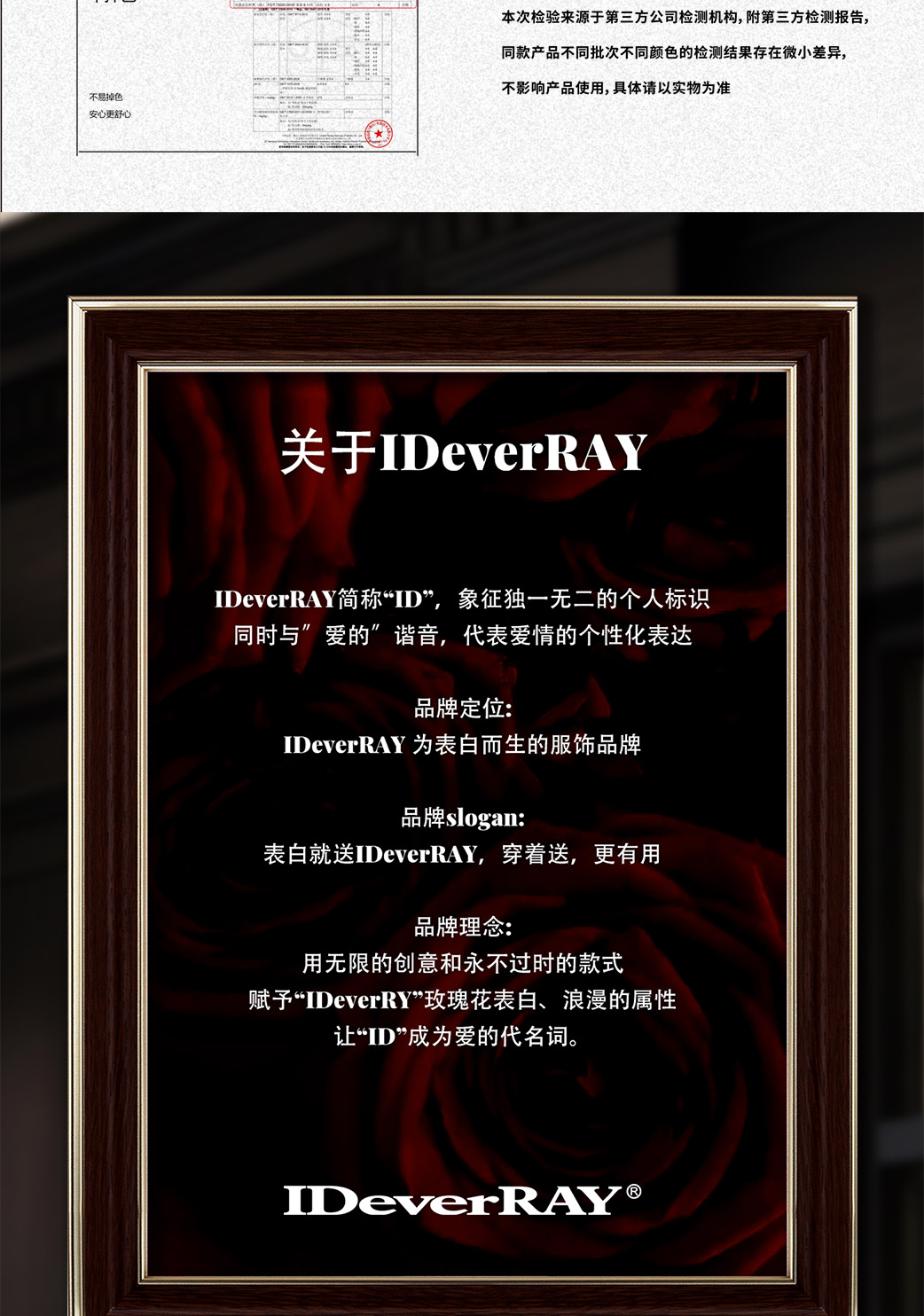 - ❣IDeverRAY简称“ID”,象征独一无二的个人标识,同时与"爱的"谐音,代表爱情的个性化表达 品牌slogan:玫瑰🌹配ID,更好的告白 品牌语言:I ID YOU