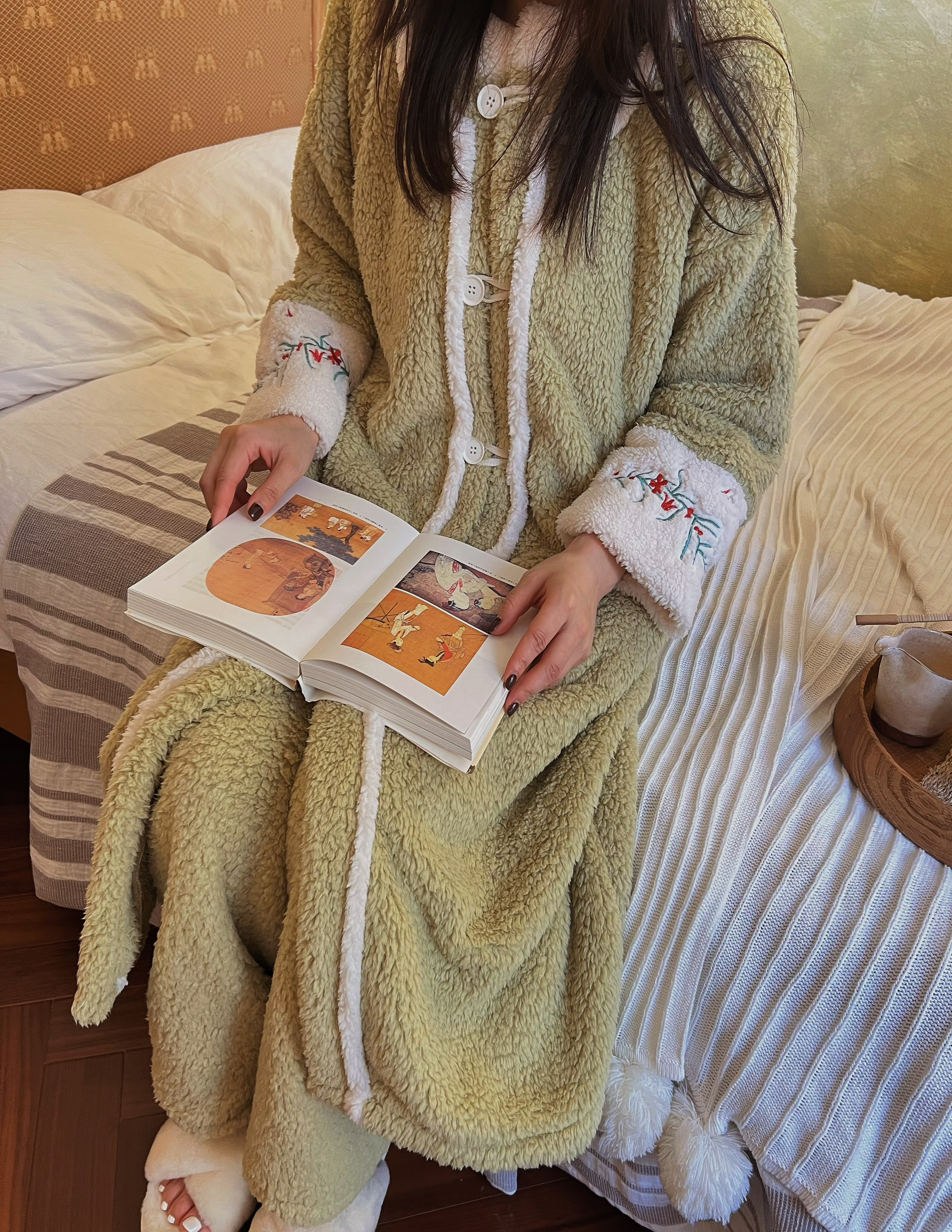 这套国风刺绣法兰绒家居服睡衣,便是一场文化浪漫元素与现代生活的邂逅。