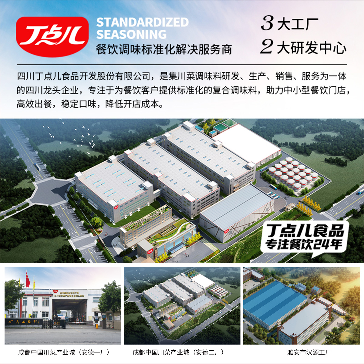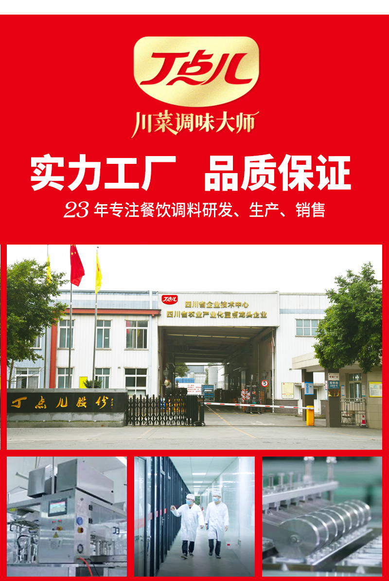 - 四川丁点儿食品开发股份有限公司,是集川菜调味料研发、生产、销售、服务为一体的现代化企业,专注为餐饮客户提供川菜调味解决方案。公司成立至今,服务了超百万家的餐饮门店以及连锁品牌。
