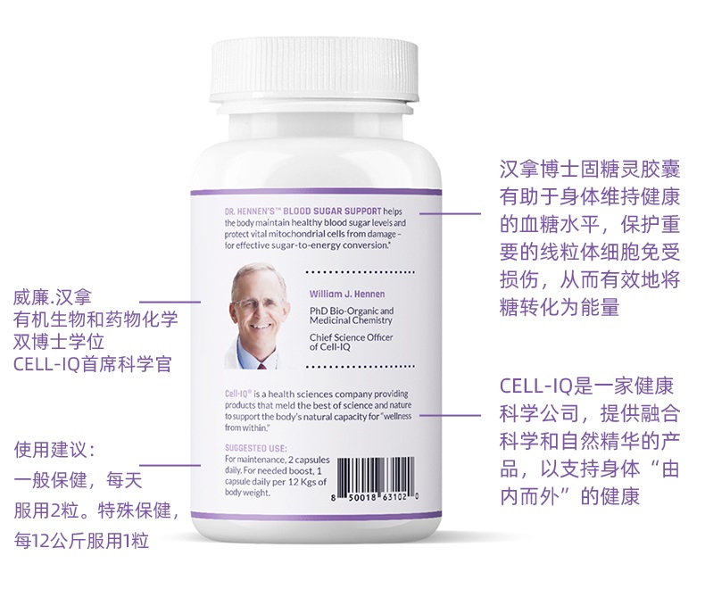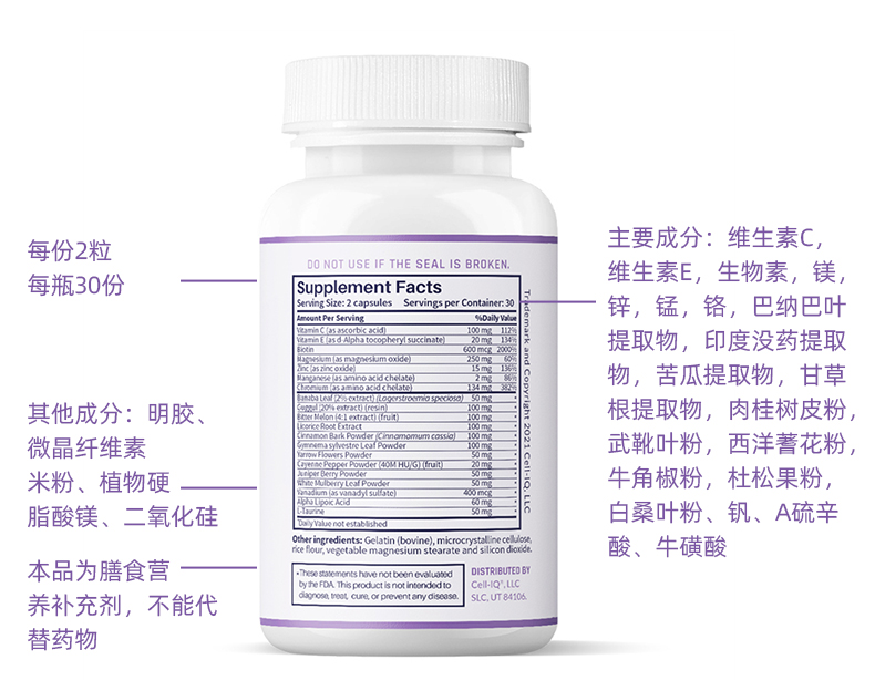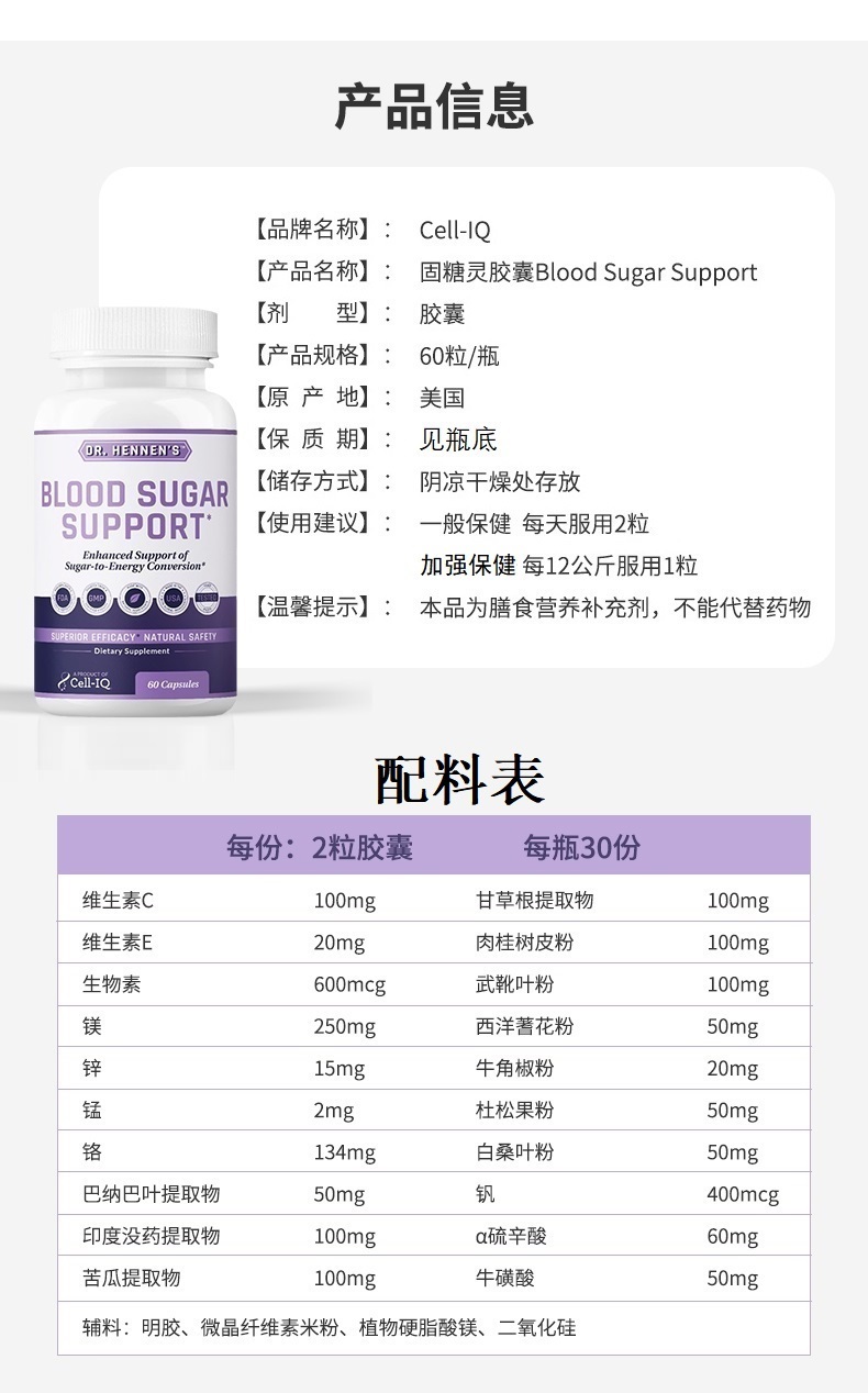 美国Cell-IQ汉拿博士固糖灵胶囊Blood Sugar Support(60粒)