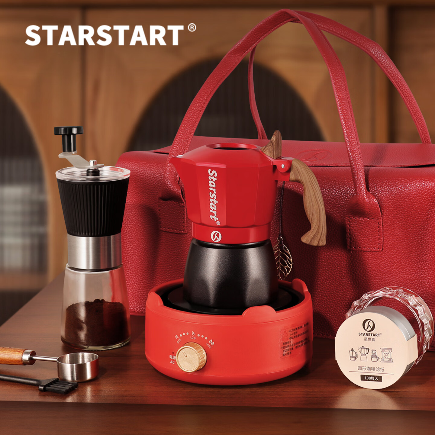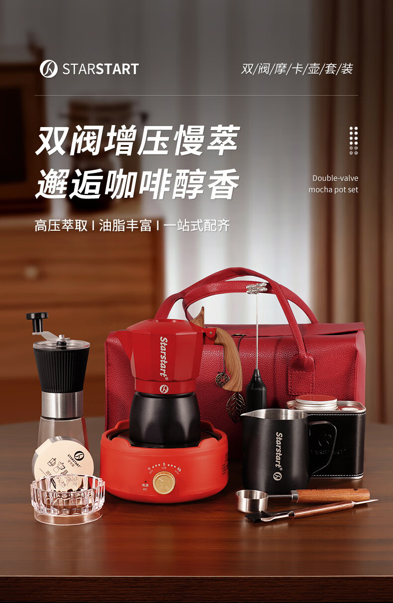 STAR-START双阀摩卡壶12件套皮箱装