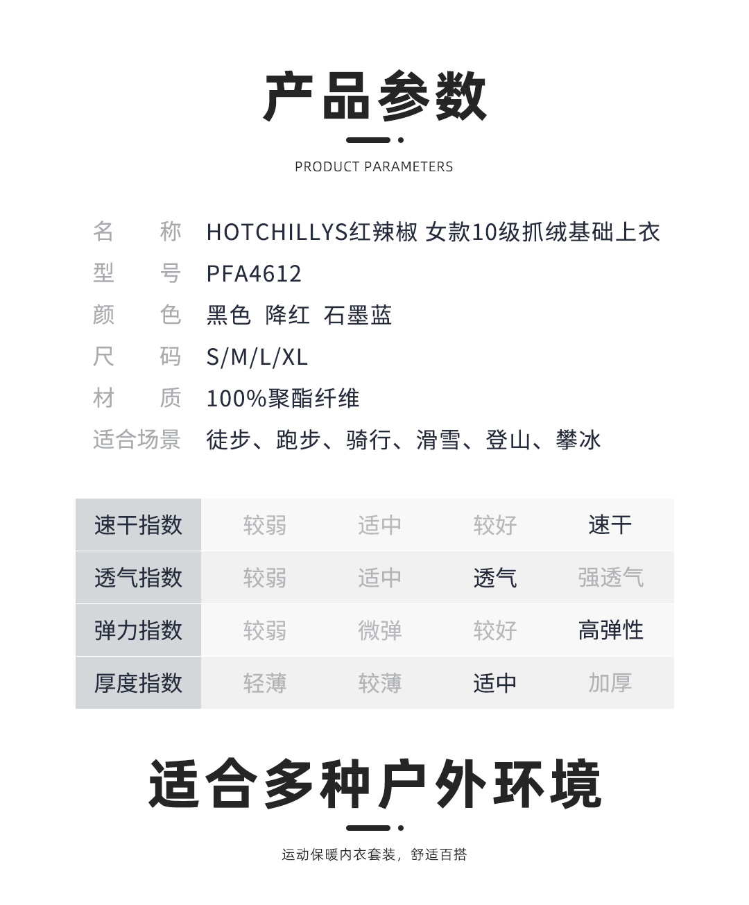 HOTCHILLYS热椒10级女秋冬户外保暖抓绒排汗透气上内衣HA4612