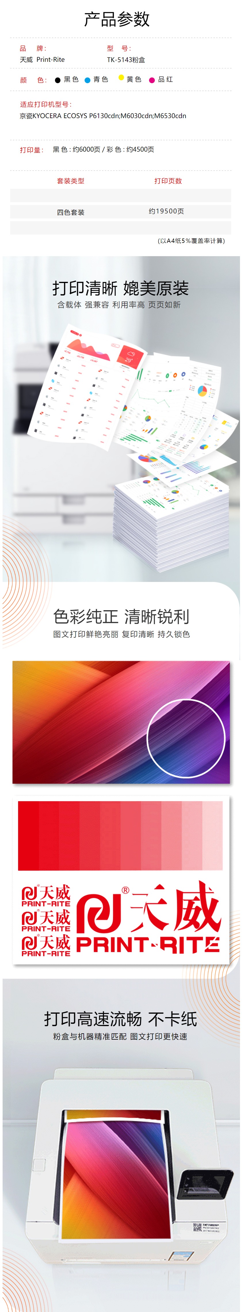 天威 TK-5143粉盒 适用京瓷KYOCERA ECOSYS P6130cdn墨盒M6030cdn碳粉M6530cdn复印机粉盒