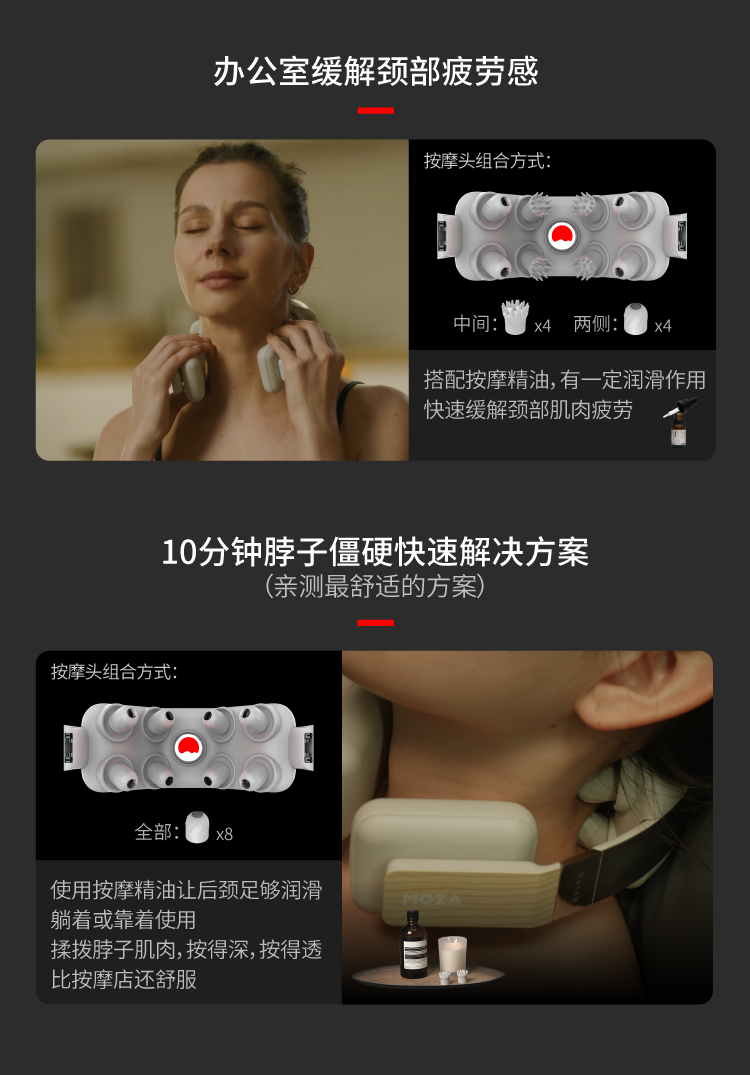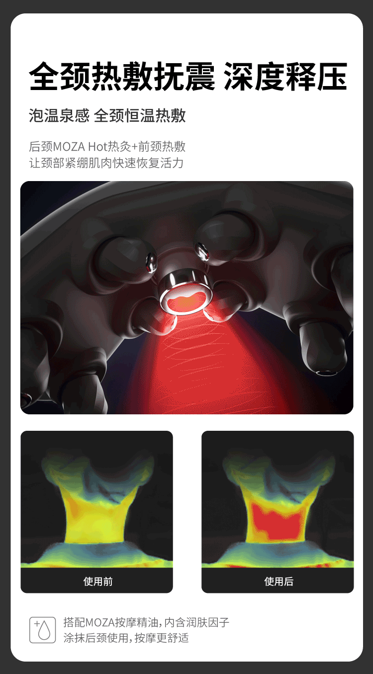 MOZA摩砾 全颈修护按摩仪 按得深 精油spa 全颈热敷 缓解脖子僵硬