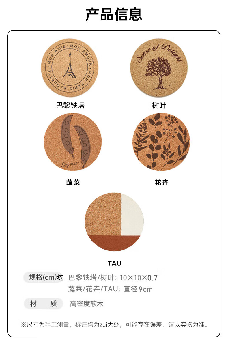 隔热家用桌面软木餐垫餐厅圆形杯垫
