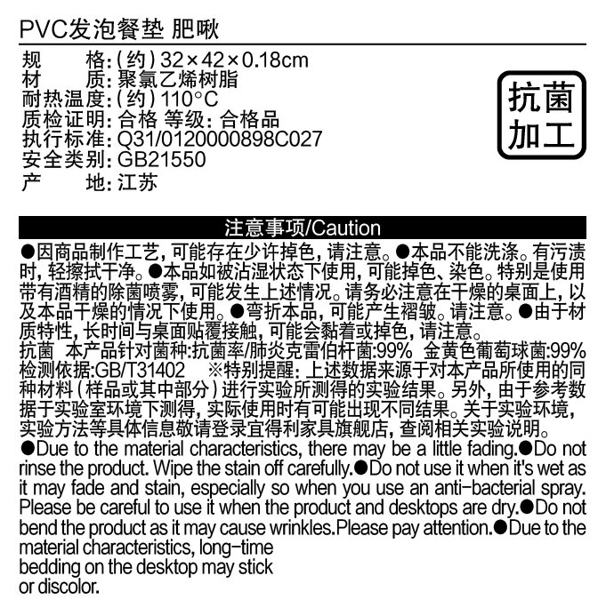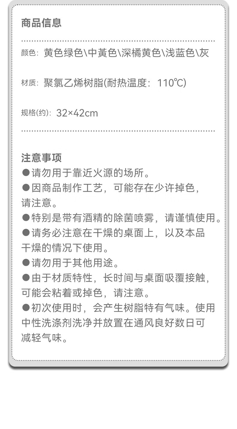 NITORI宜得利家居 餐桌餐具餐垫子隔热ins风PVC餐垫