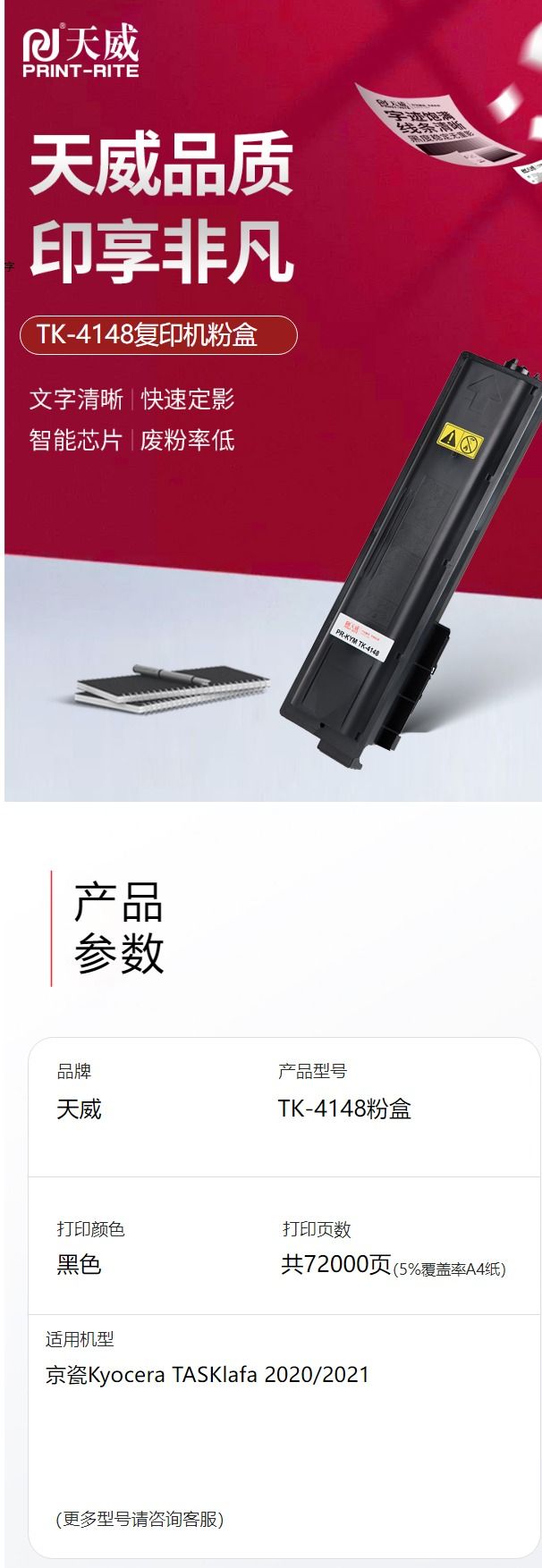 天威 TK-4148粉盒 适用京瓷Kyocera TASKalfa 2020 2021打印机 复合机墨盒 碳粉 墨粉 墨粉盒